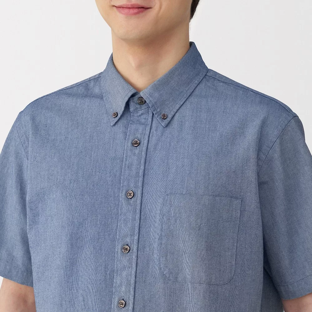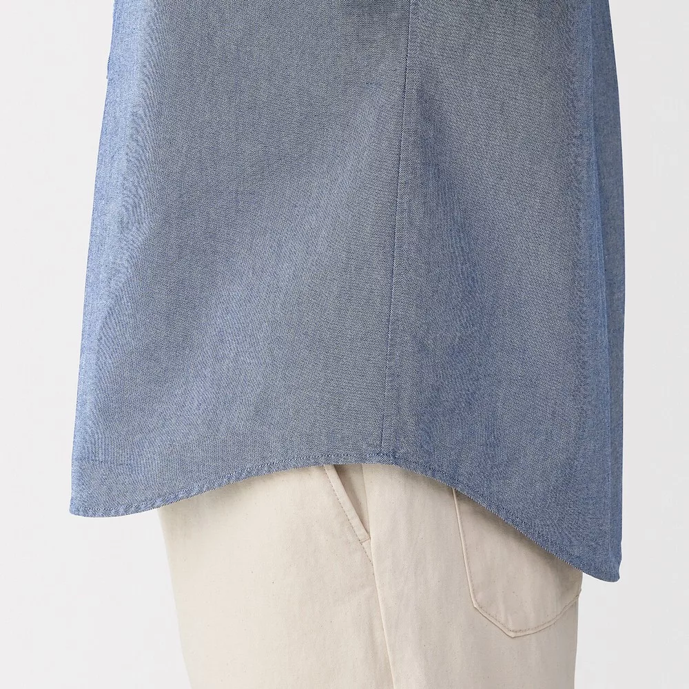 【MUJI 無印良品】男有機棉水洗牛津布扣領長袖襯衫 L 深藍