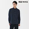 【MUJI 無印良品】男水洗牛津布立領長袖襯衫 M 深藍直紋