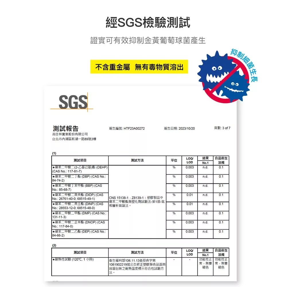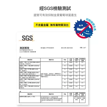 經SGS檢驗測試,證實可有效抑制金黃葡萄球菌產生