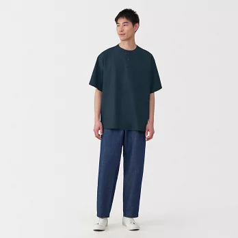 【MUJI 無印良品】男有機棉水洗牛津布扣領長袖襯衫 L 深藍