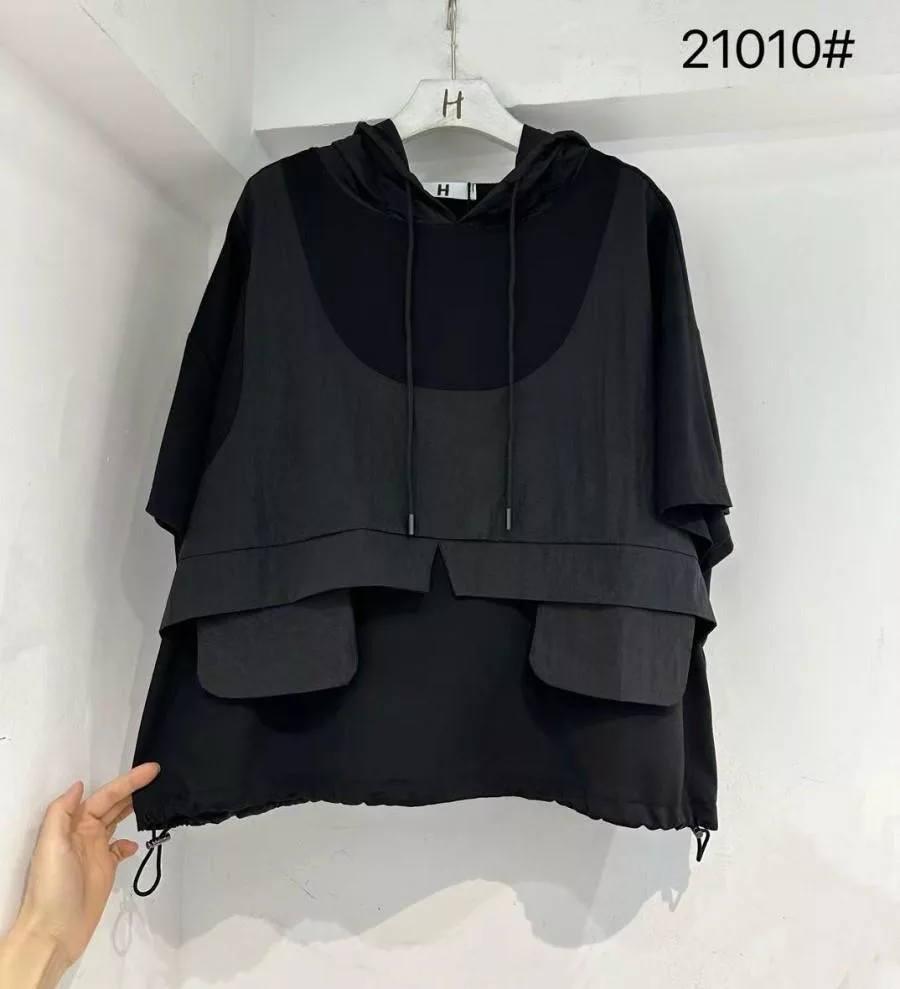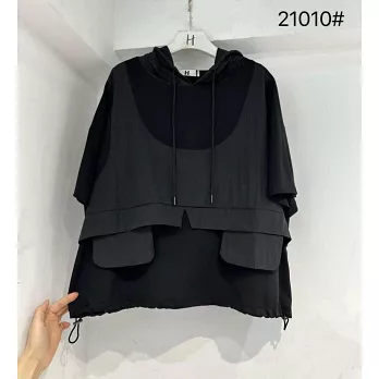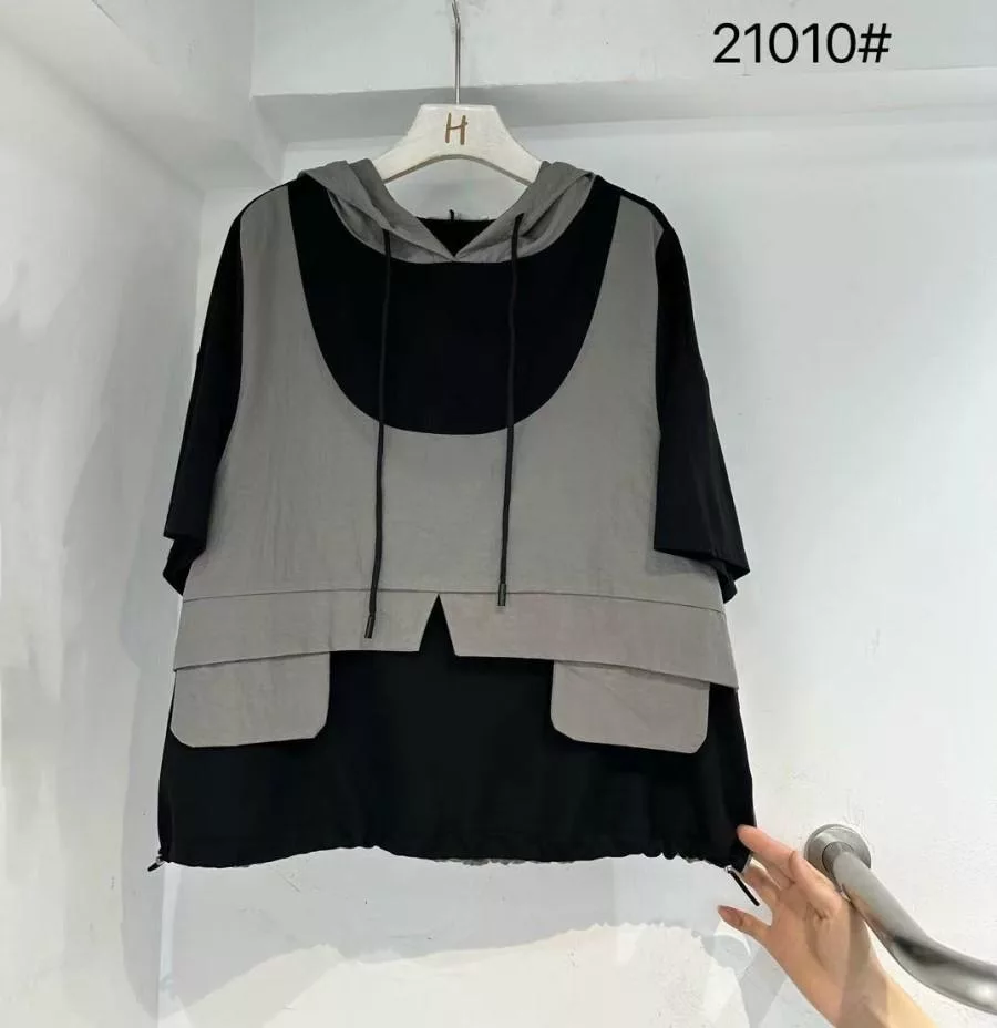 O-ni O-ni進口舒適超透氣羅馬棉帽假2件寬鬆日韓潮款升級版短袖上衣(品質保證)_21010 F 灰色