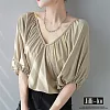 【Jilli~ko】V領皺褶感氣質雪紡衫 21D1997  FREE 杏色