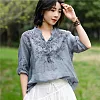 【慢。生活】文藝復古氣質荷葉邊刺繡棉質上衣 3545 FREE 藍色