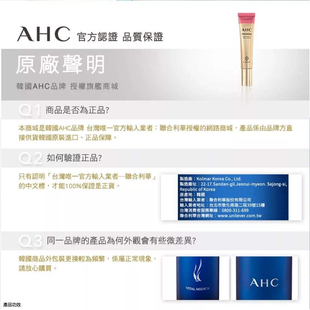 AHC 黃金逆時超導胜肽緊緻全臉眼霜40ml