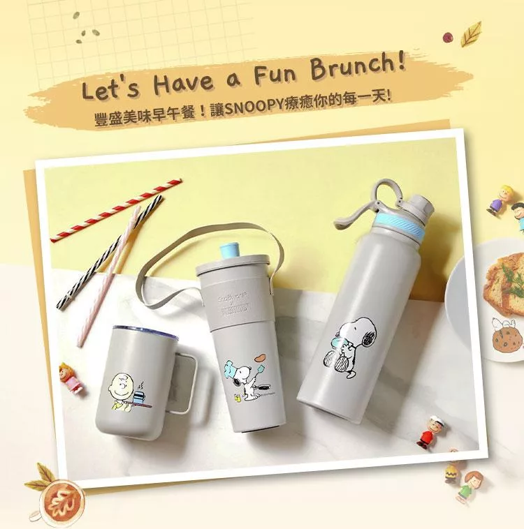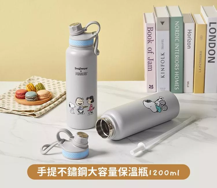 【美國康寧】Snapware Snoopy美味早午餐- 酷動手提不鏽鋼大容量保溫瓶1200ml
