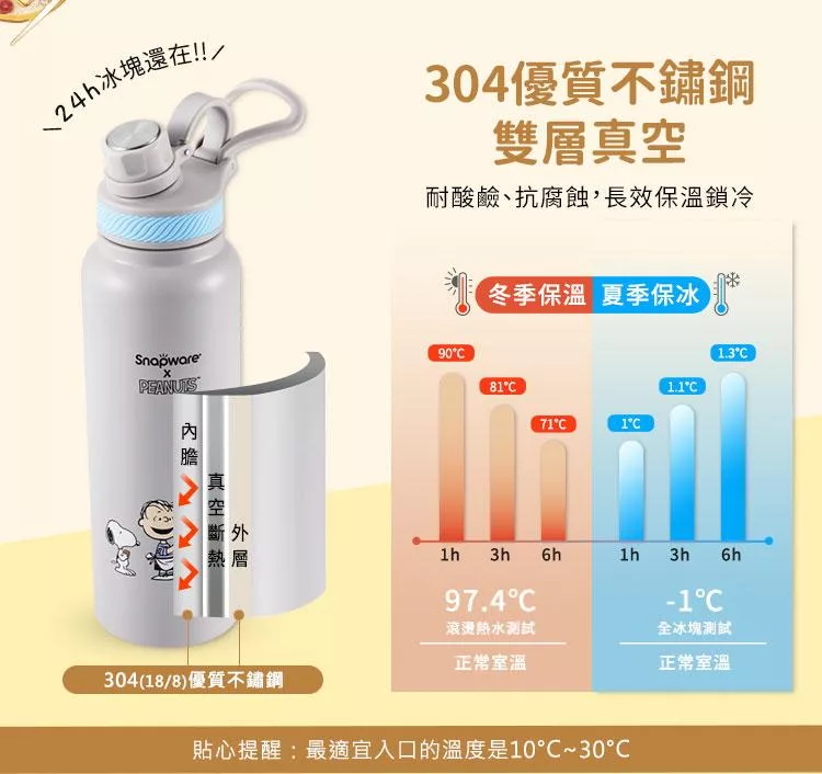 【美國康寧】Snapware SNOOPY鋅陶瓷保冰保溫杯 贈 SNOOPY玻璃杯