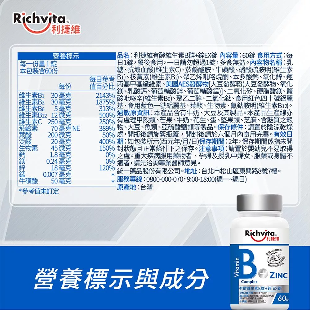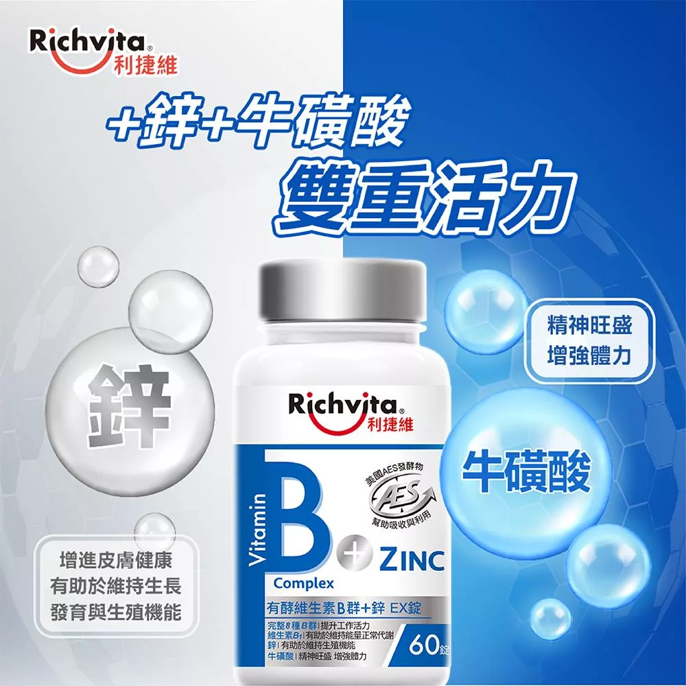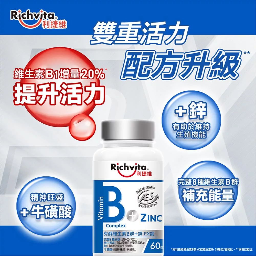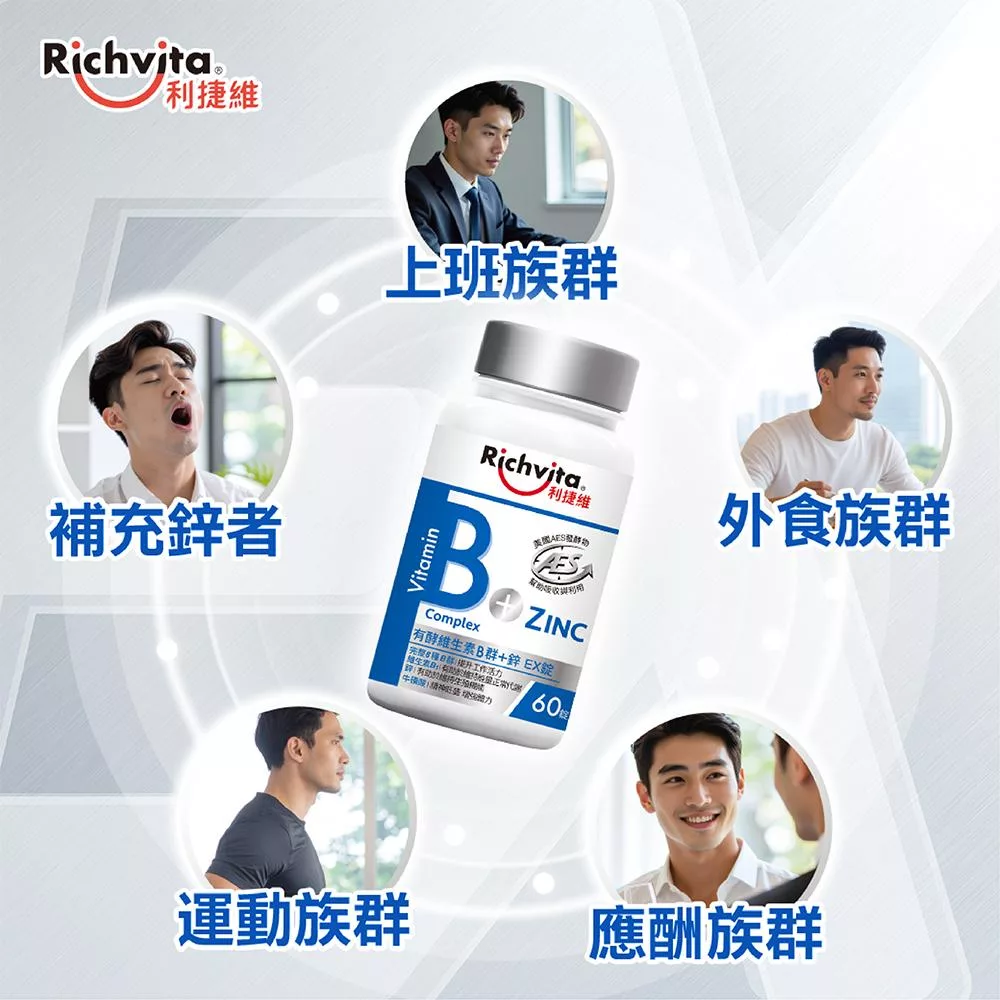 【Richvita利捷維】有酵維生素(60錠) B群+鋅EX錠(男性)