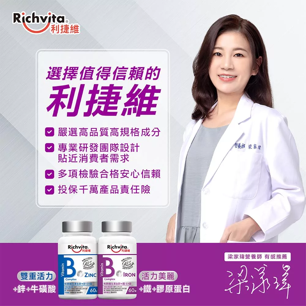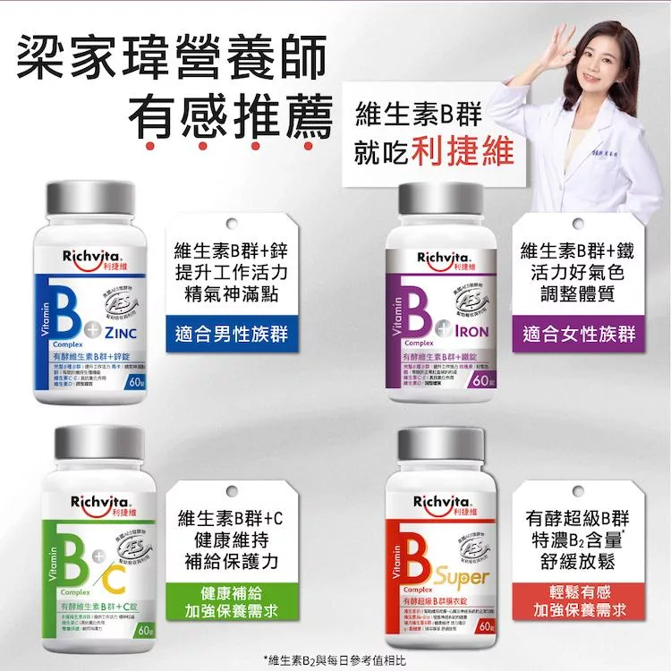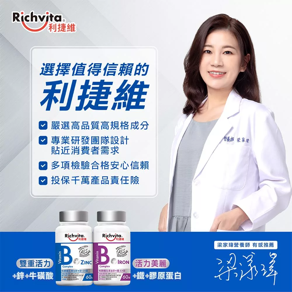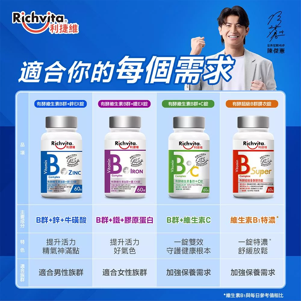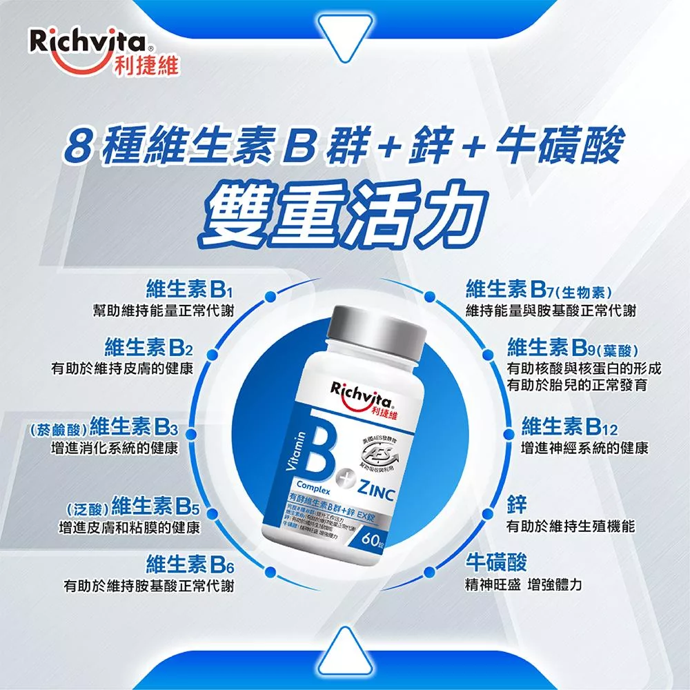 【Richvita利捷維】有酵維生素(60錠) B群+鋅EX錠(男性)