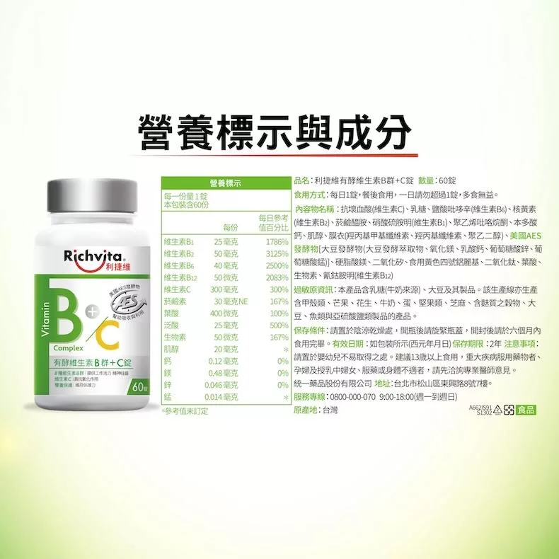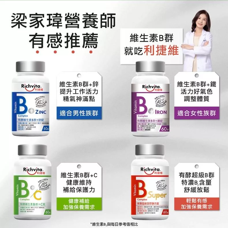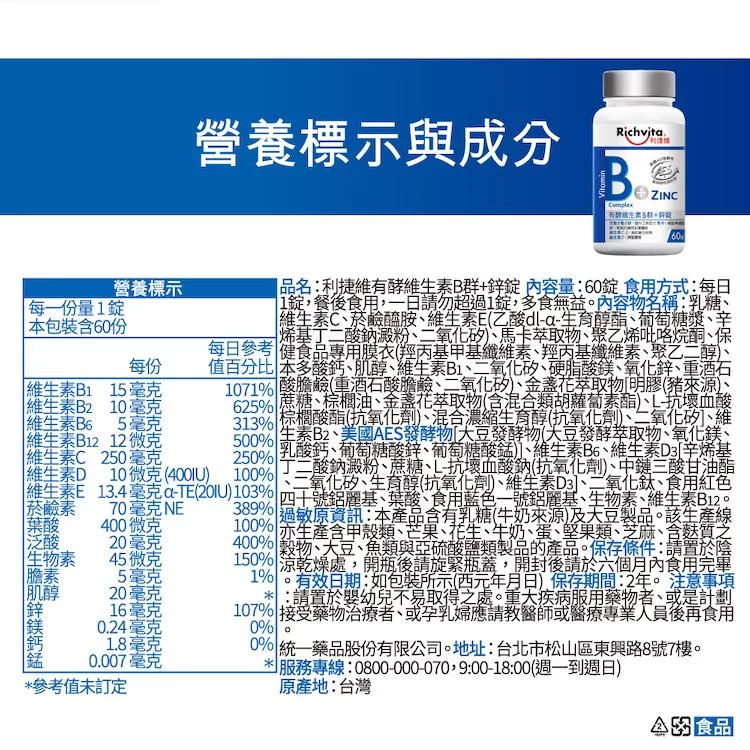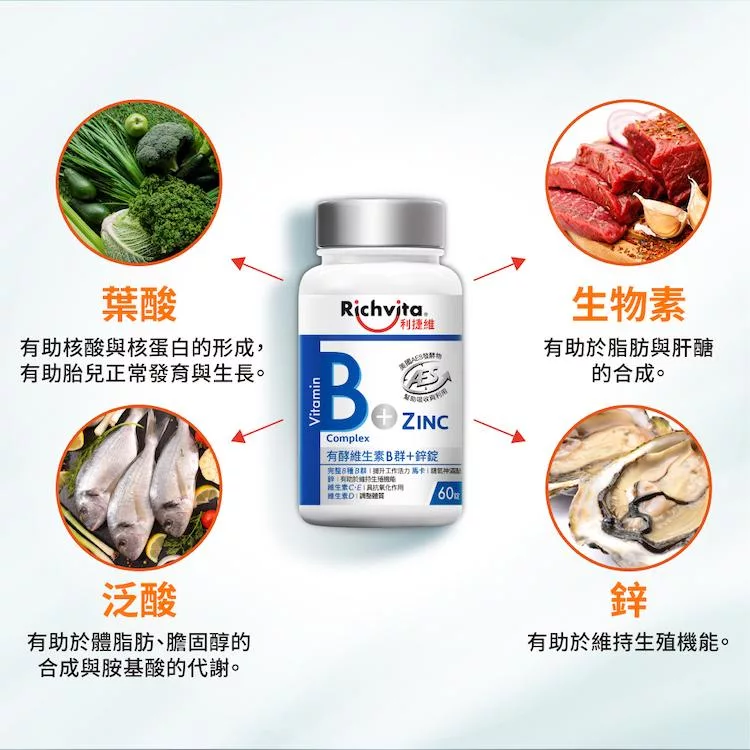 【Richvita利捷維】有酵維生素(60錠) B群+鋅EX錠(男性)