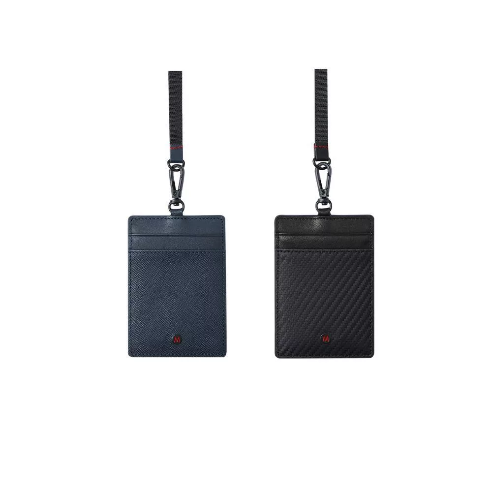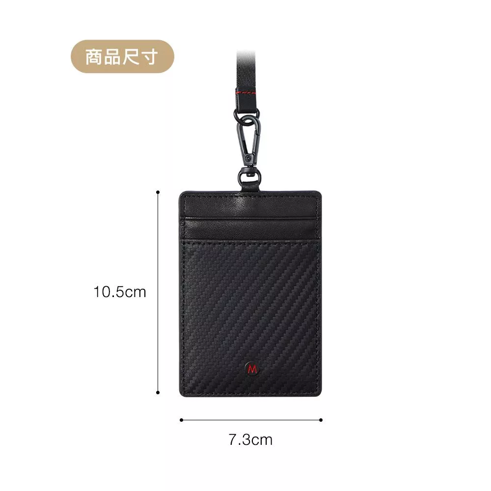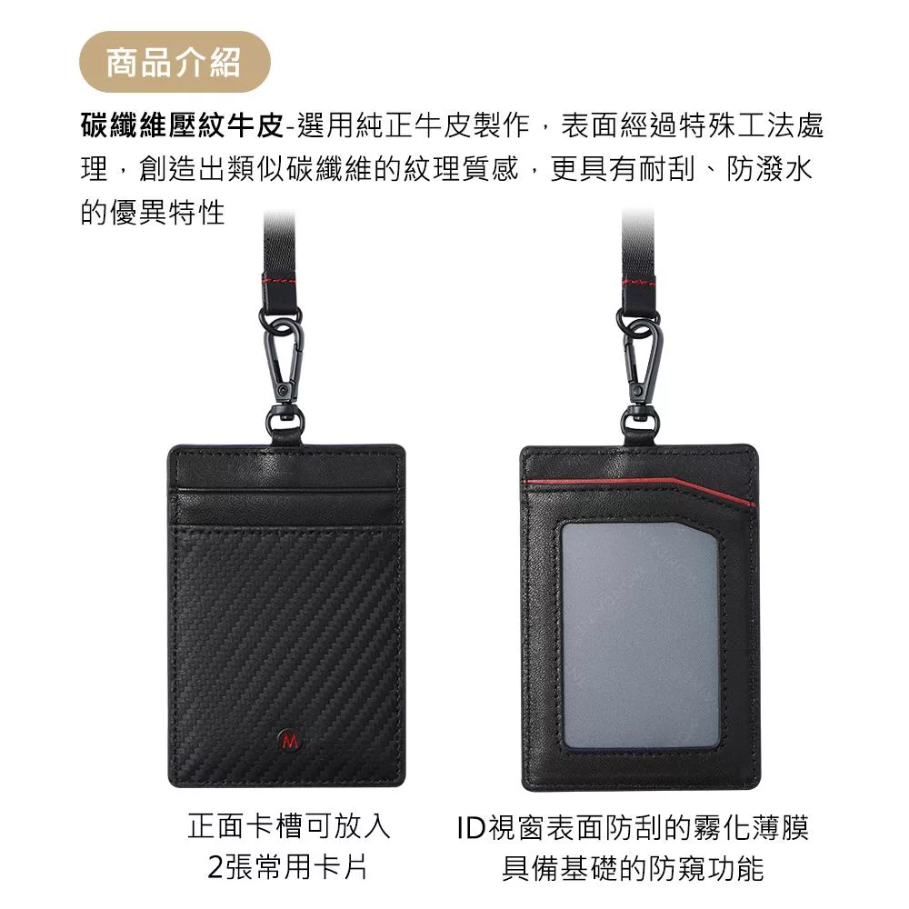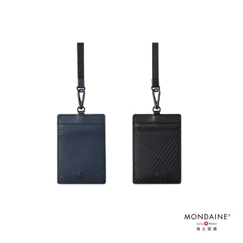 MONDAINE 瑞士國鐵 蘇黎世3卡安全扣證件套|防夾頸繩|牛皮/葡萄皮|悠遊卡/識別證卡套 - 碳纖維紋