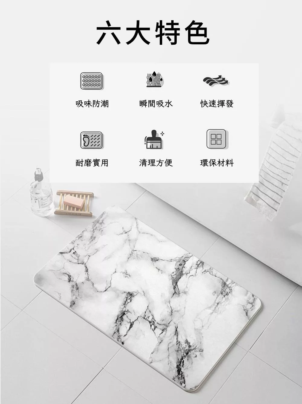 【美好家 Mehome】矽藻土軟地墊 淺灰長方