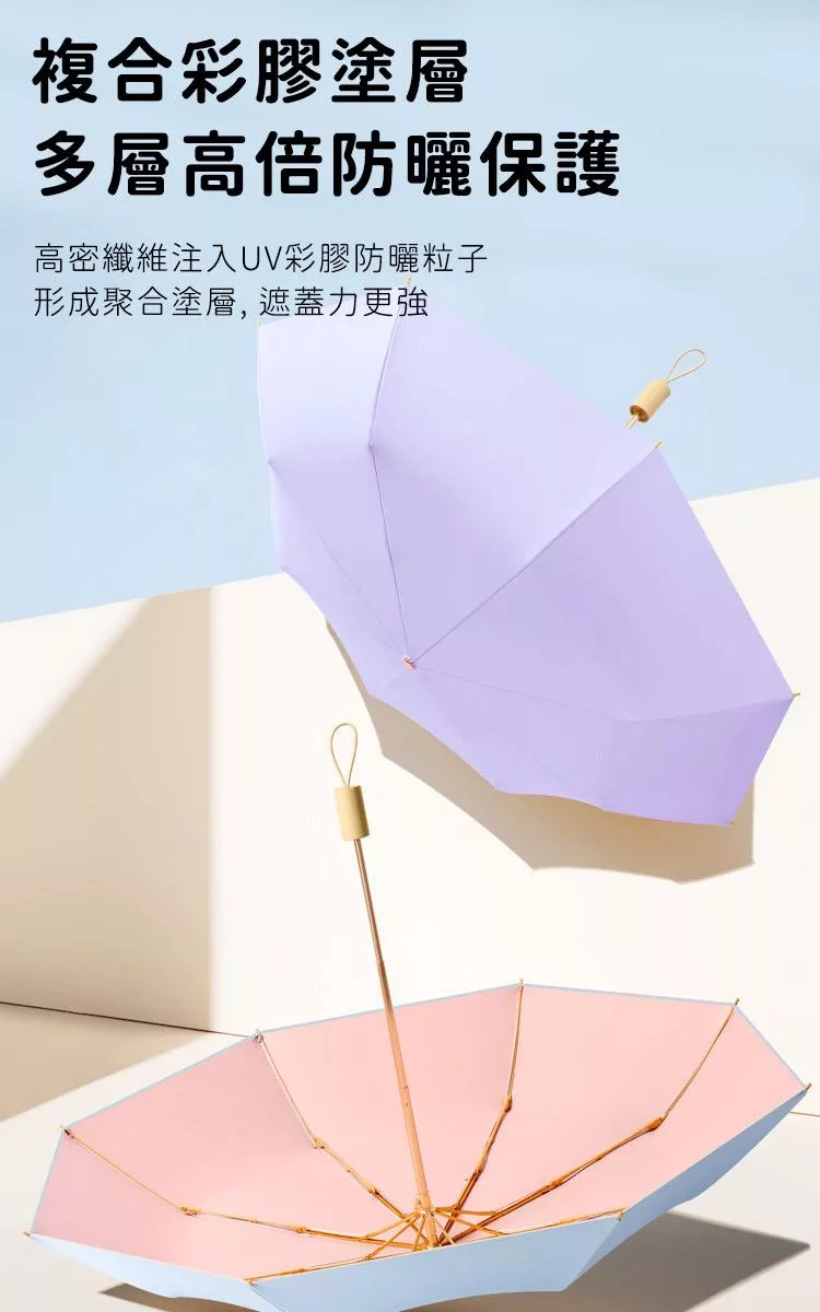 【EZlife】黑膠袖珍五折遮陽傘 淺藍