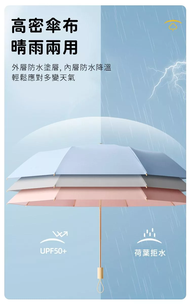 【德國boy】抗UV超輕防曬降溫防風三折晴雨傘_ 晴空藍外