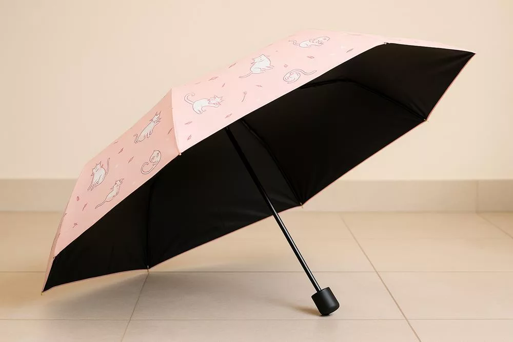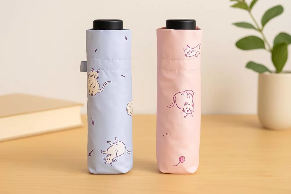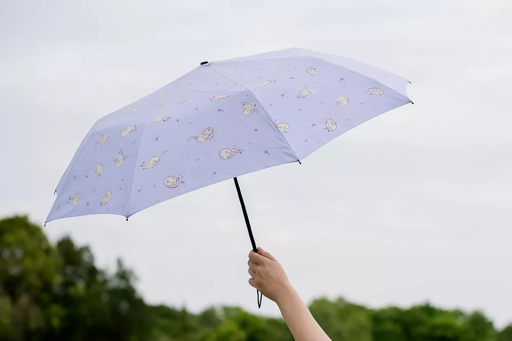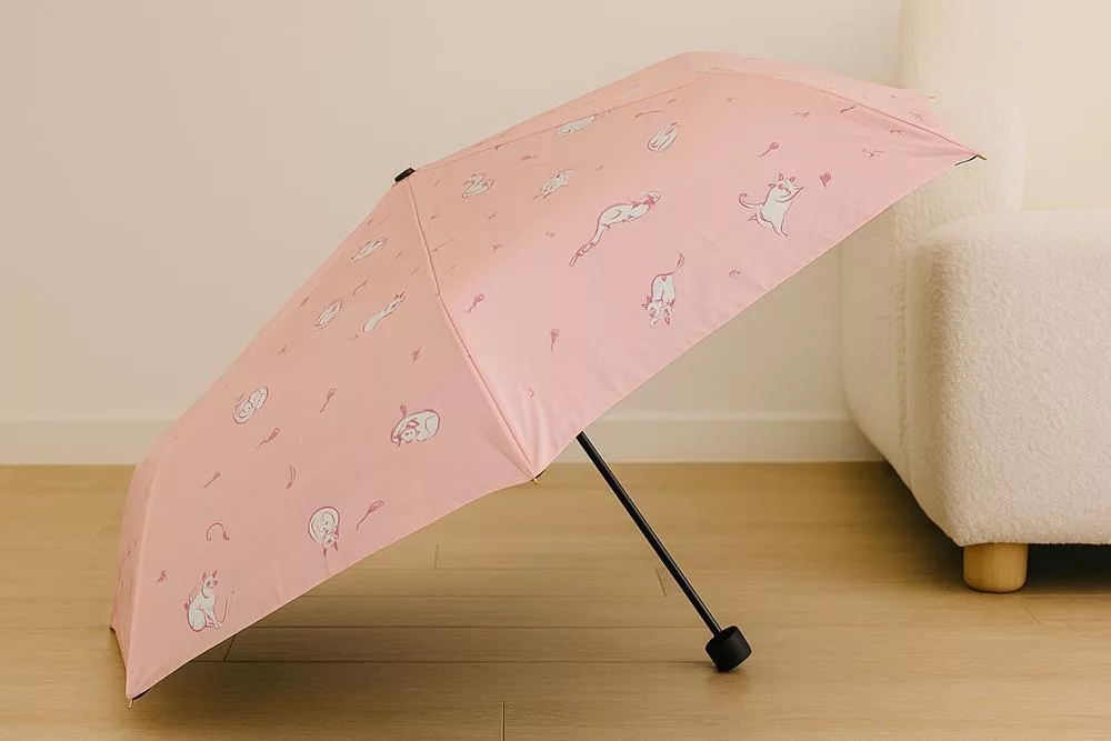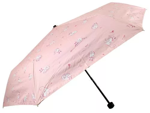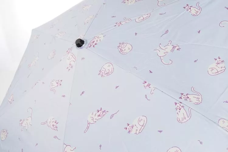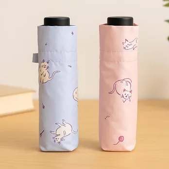 【日本Attain】UPF50+完全遮光 玩耍貓咪 抗UV折傘 ‧ 紫