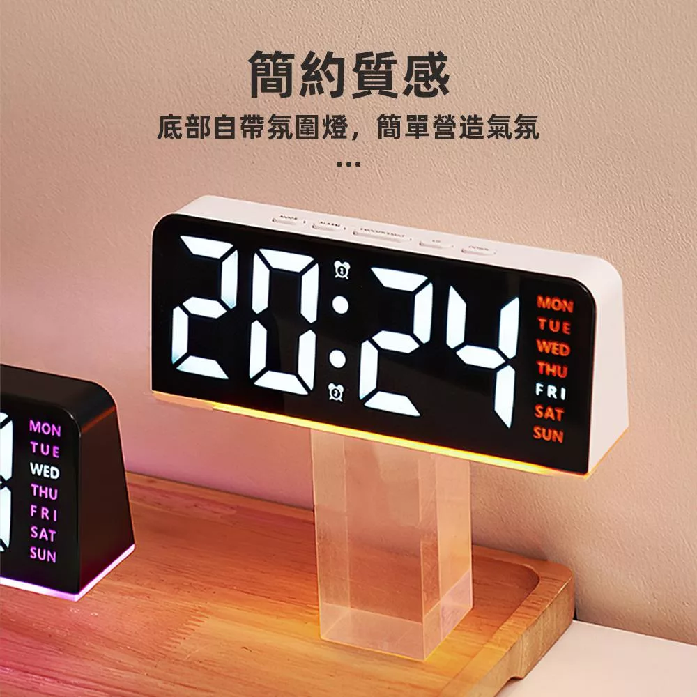 簡約桌面時鐘・雙供電模式・氛圍燈助眠