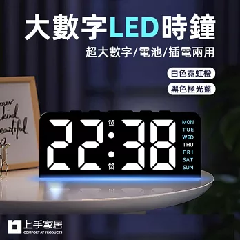 【上手家居】大數字led時鐘(電子時鐘/電子鐘/數字時鐘/電子鬧鐘/數位時鐘/桌鐘) 白色霓虹橙
