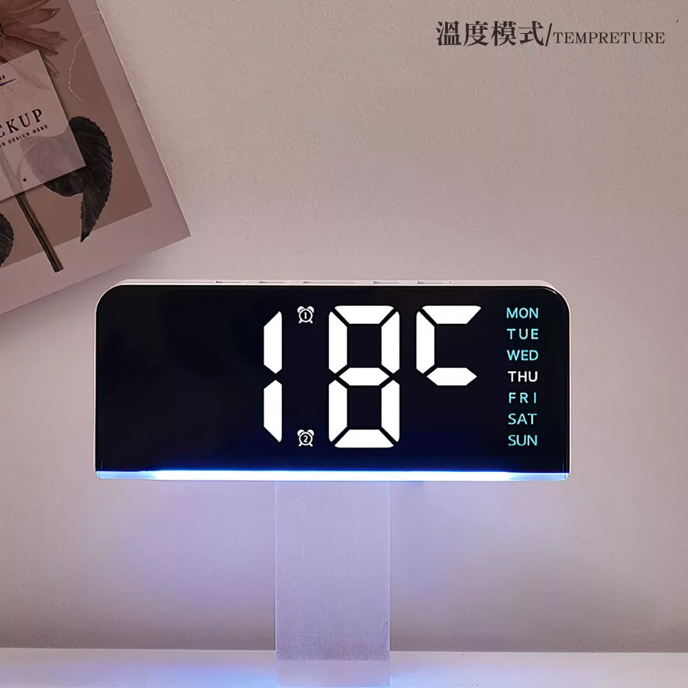 夜深時刻,氛圍燈微微點亮,溫柔陪伴入眠,不傷眼的超大數字,清晰可見時間與溫度,安心睡眠不擔心。