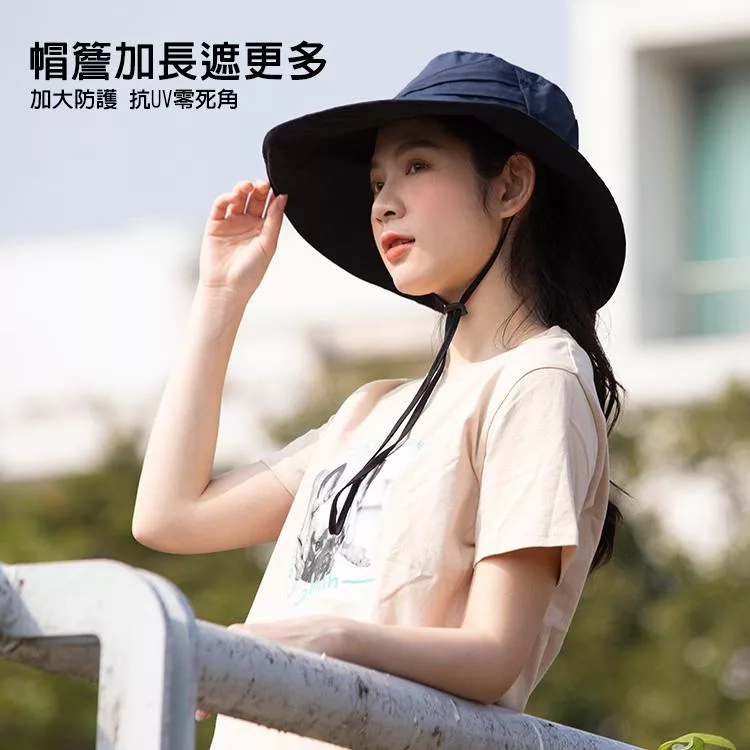 【KISSDIAMOND】大帽檐雙面可摺疊遮陽帽(KD-0867) F 雙面款-藏青