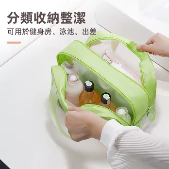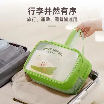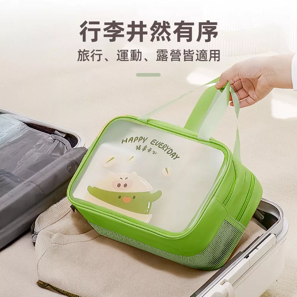 【上手家居】淘氣小豬乾溼分離包(盥洗包/洗漱包/防水收納袋/透明包/旅行收納包/游泳包/防水化妝包) 青綠小豬