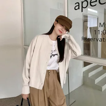 【AMIEE】文藝寬鬆休閒夾棉外套(KDCQ-2736) L 米白色
