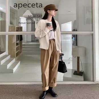 【AMIEE】文藝寬鬆休閒夾棉外套(KDCQ-2736) M 卡其色