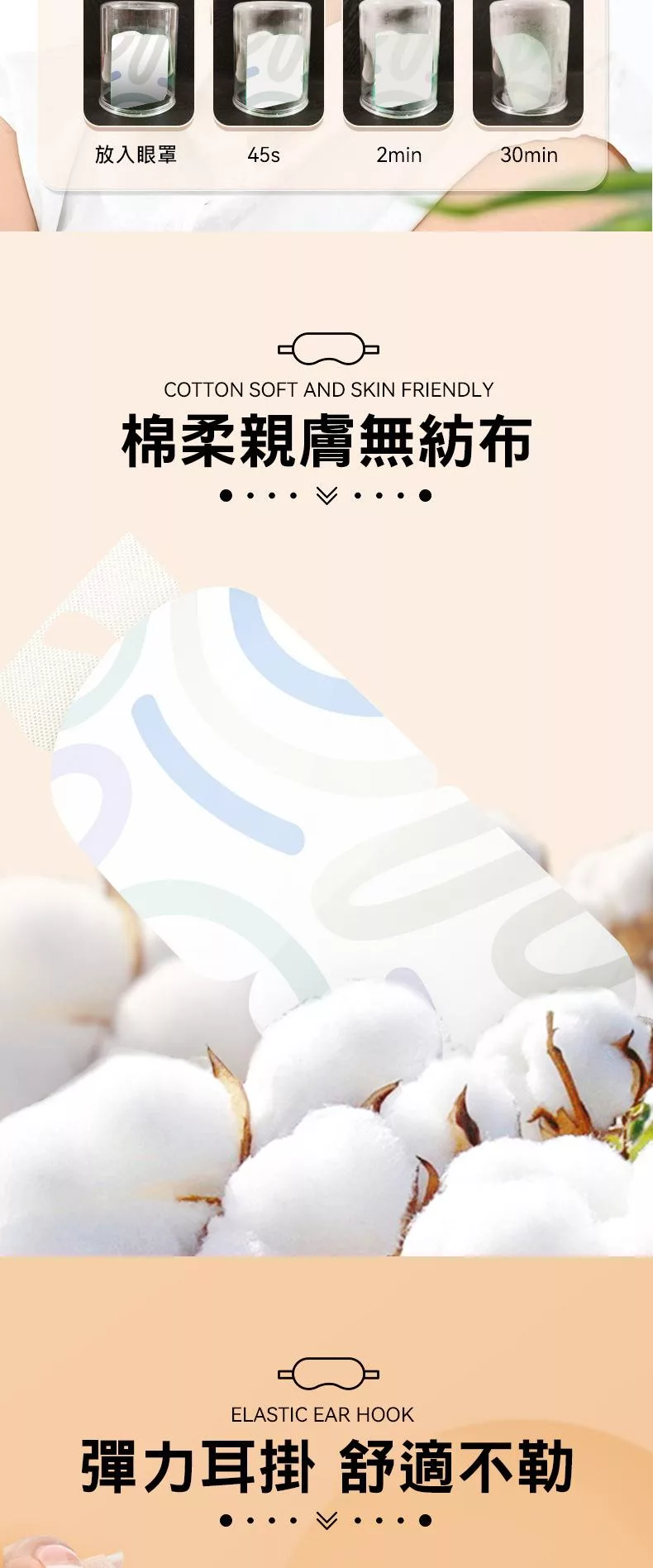 觸感柔軟細膩,睡眠遮光,透氣性好,不刺激