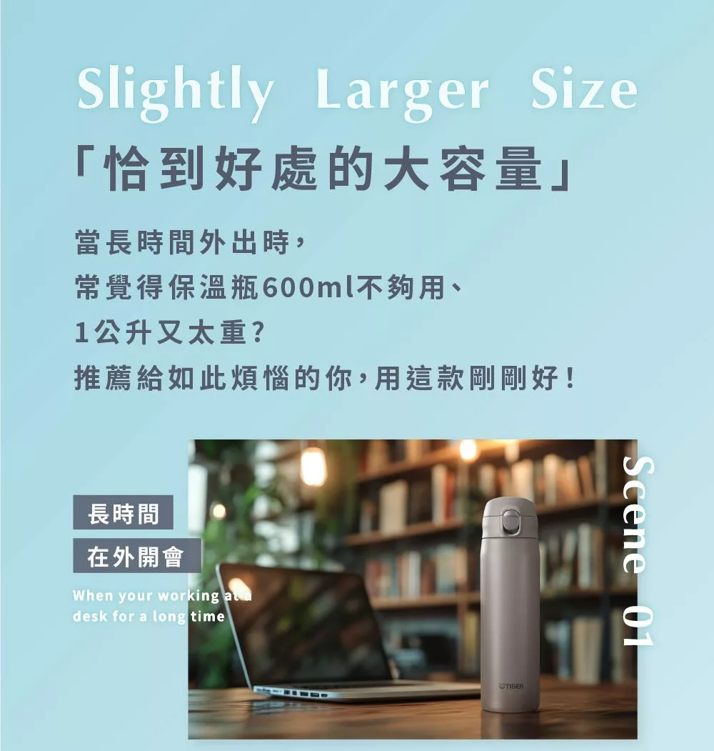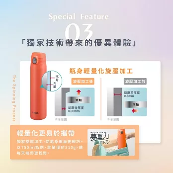 TIGER虎牌 大容量彈蓋雙層不鏽鋼保溫瓶880ml(MTR-W088) 晴藍色