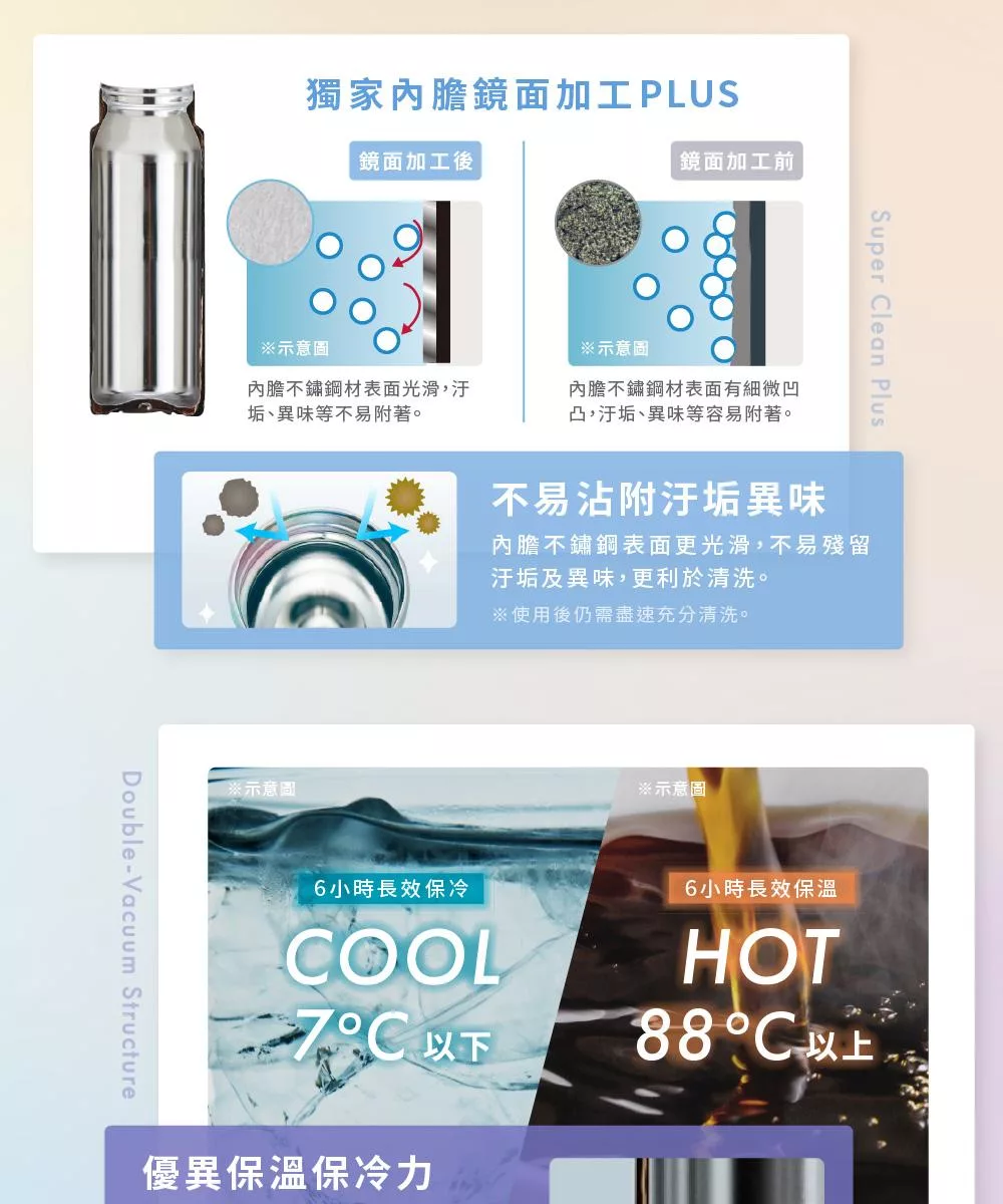 4. 內膽鏡面加工Plus,不易殘留汙垢與異味