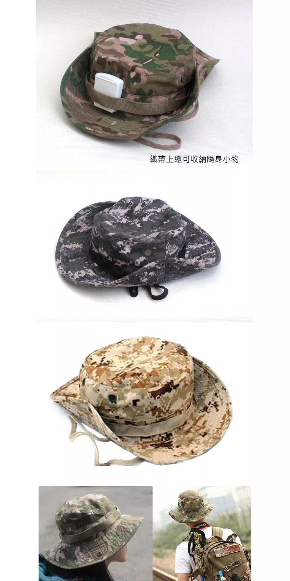 E.City_可翻釦迷彩風戶外遮陽帽漁夫帽 綠
