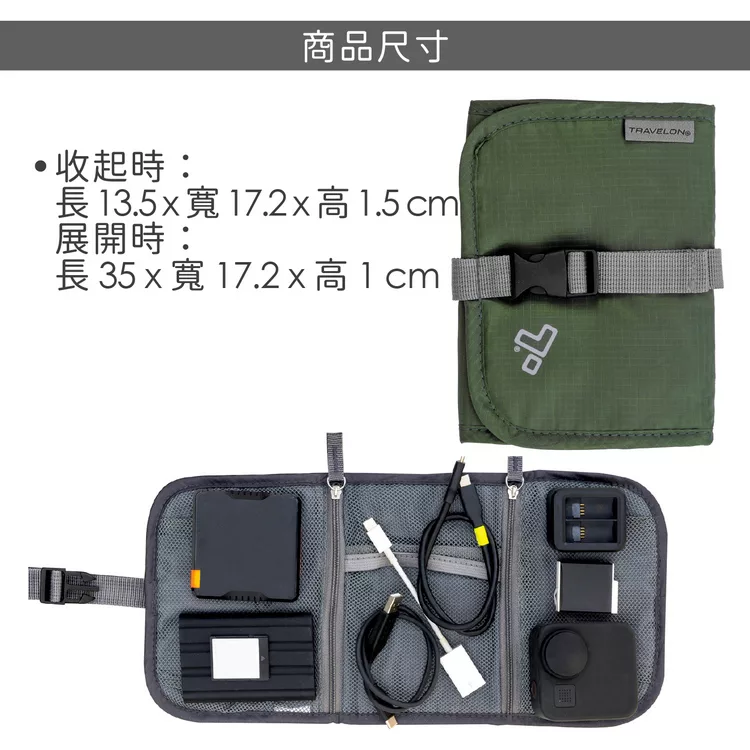 《TRAVELON》扣式3C線材收納包(軍綠) | 充電器 線材 行動電源 首飾收納袋 銀飾袋 化妝包 收納包 旅行小包