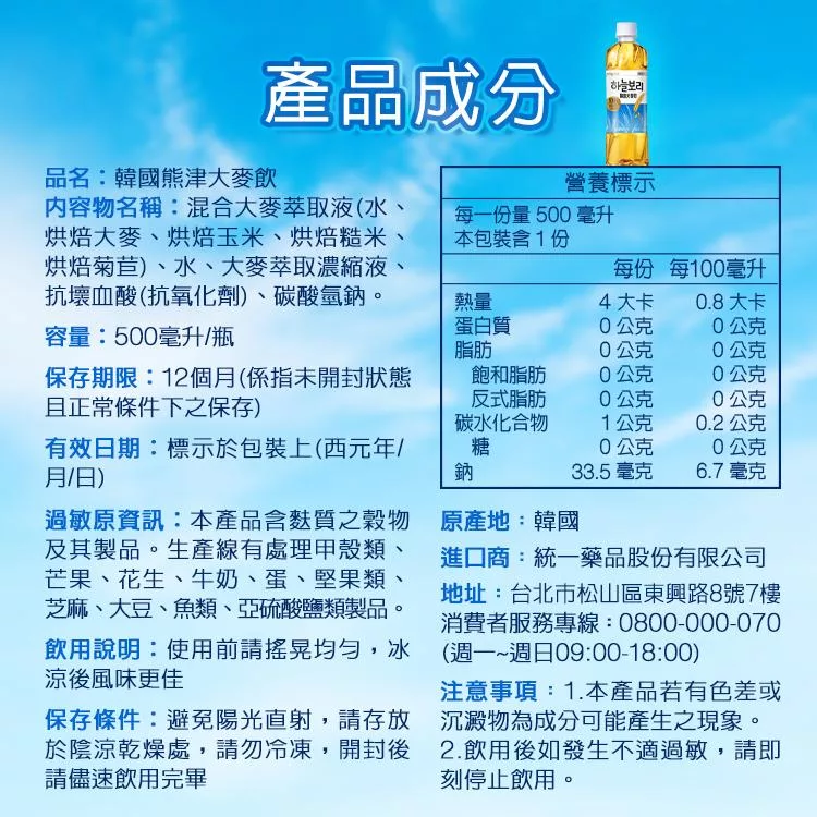 韓國熊津(效期2025/12/7) 大麥飲500ml