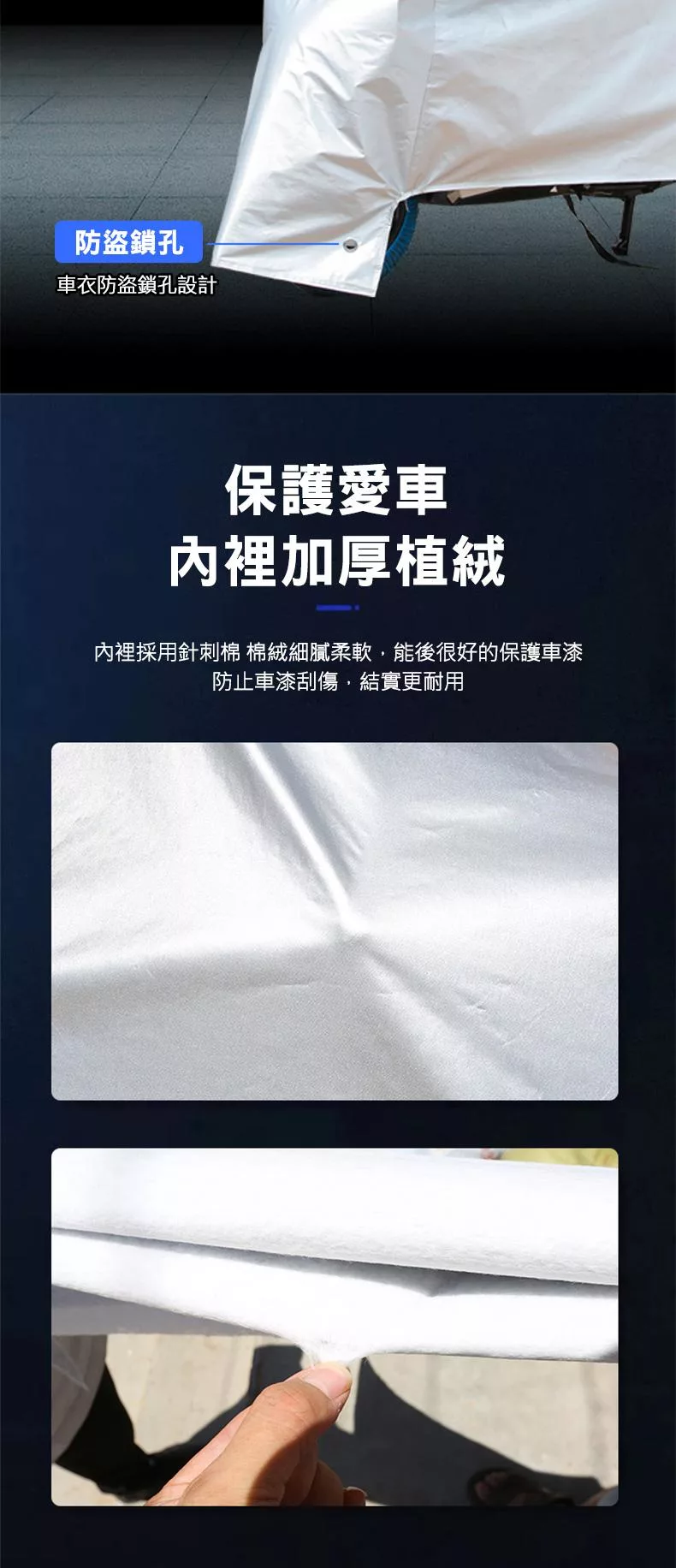 內裡針刺棉絨,細膩柔軟,保護車體不被刮傷