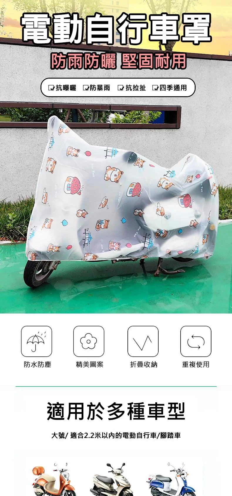 電動車車衣 自行車罩 電動車防雨罩 防塵 擋風罩 電瓶車套 機車雨衣 車衣 車衣罩 卡通/大號/包邊款