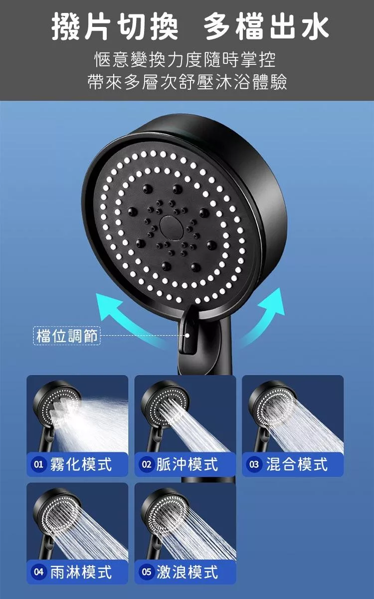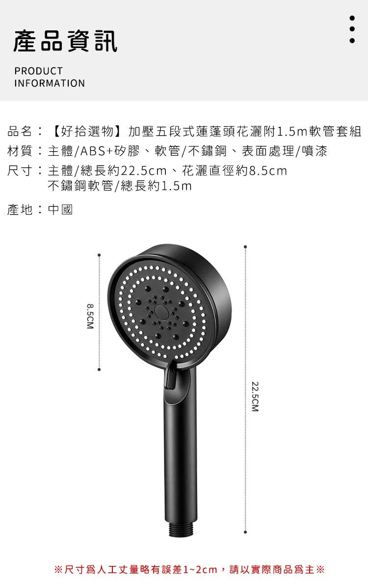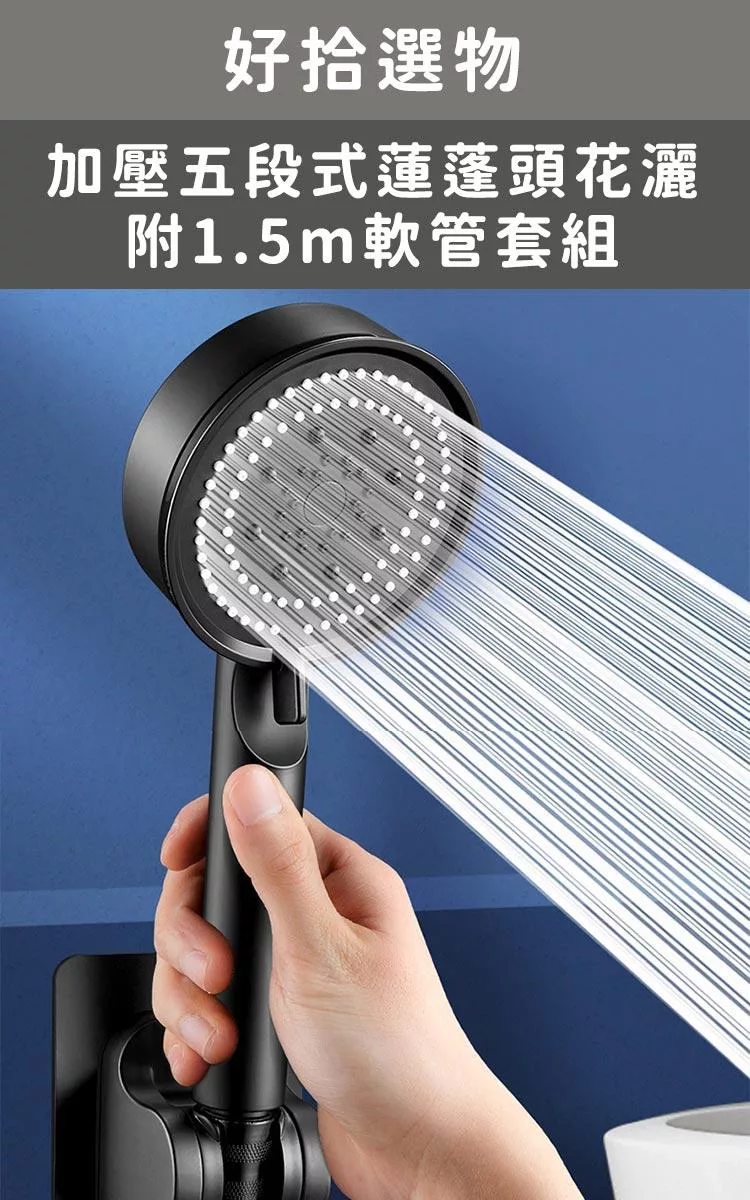 【好拾選物】加壓五段式蓮蓬頭花灑附1.5m軟管套組