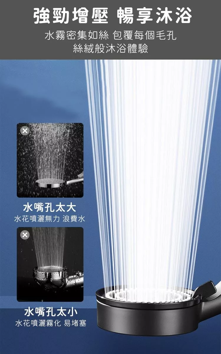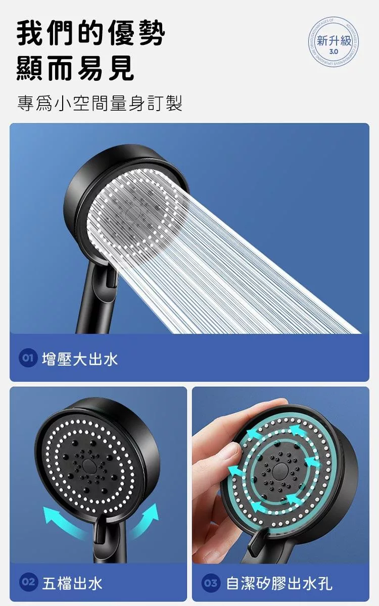 【美好家Mehome】增壓蓮蓬頭 花灑+三檔出水+止水開關(內附濾芯1個)