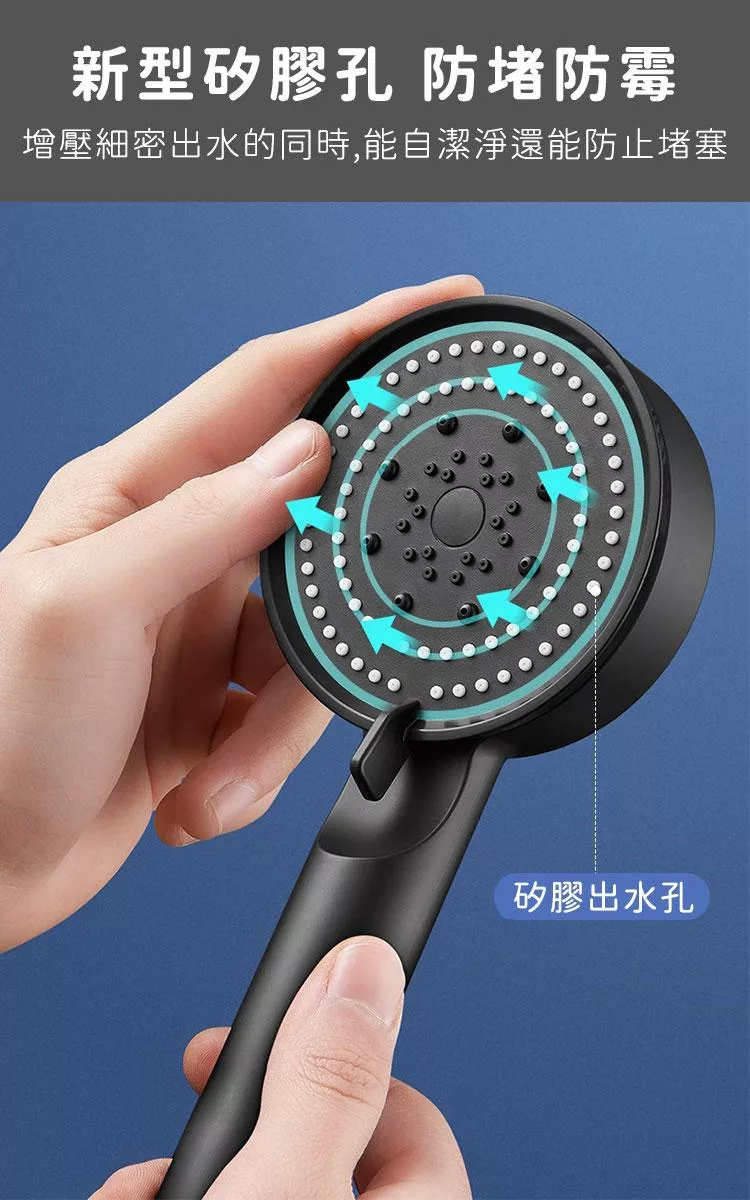 【美好家 Mehome】升級矽膠出水孔 6檔過濾蓮蓬頭/噴槍 花灑 銀色