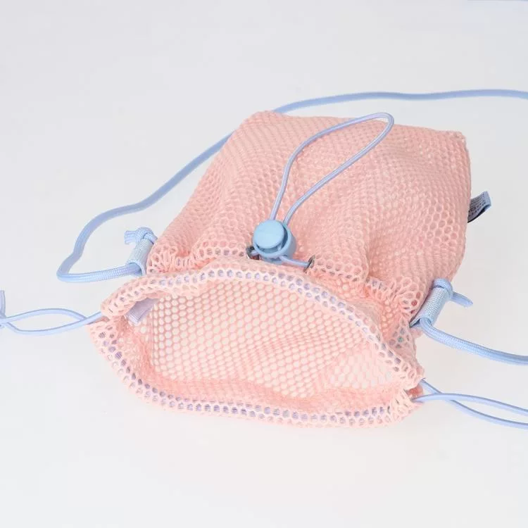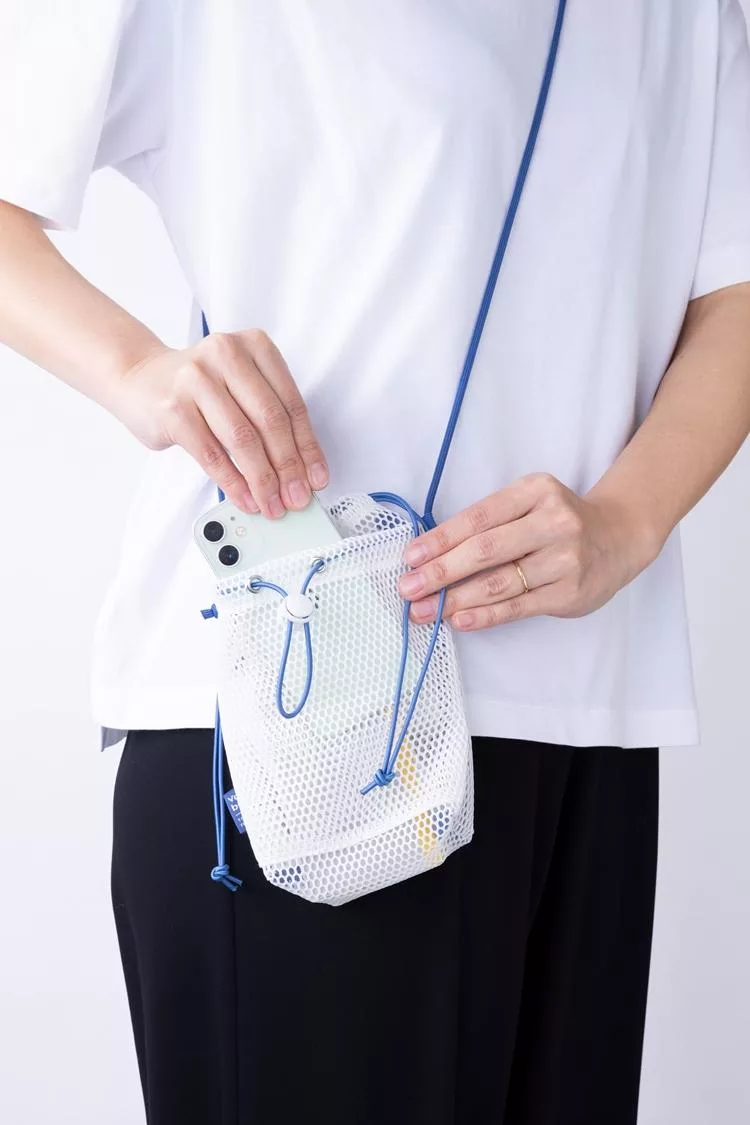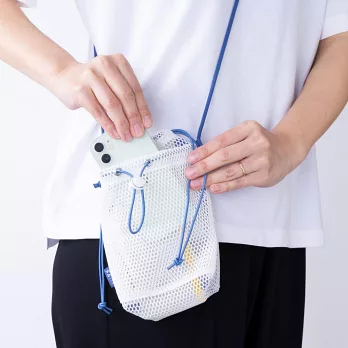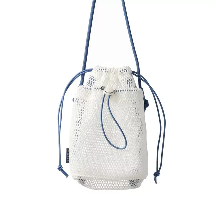 ▼【日本Mark’s】Mesh 隨身側背網狀束口收納袋 ‧ 香草(白)
