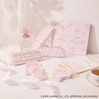 印有PAUL&JOE代表性圖案西洋菊和美樂蒂圖樣的筆袋、筆記本與便條紙等,為日常書寫時光增添溫柔氣息。讓書桌角落充滿明亮又浪漫的氛圍。