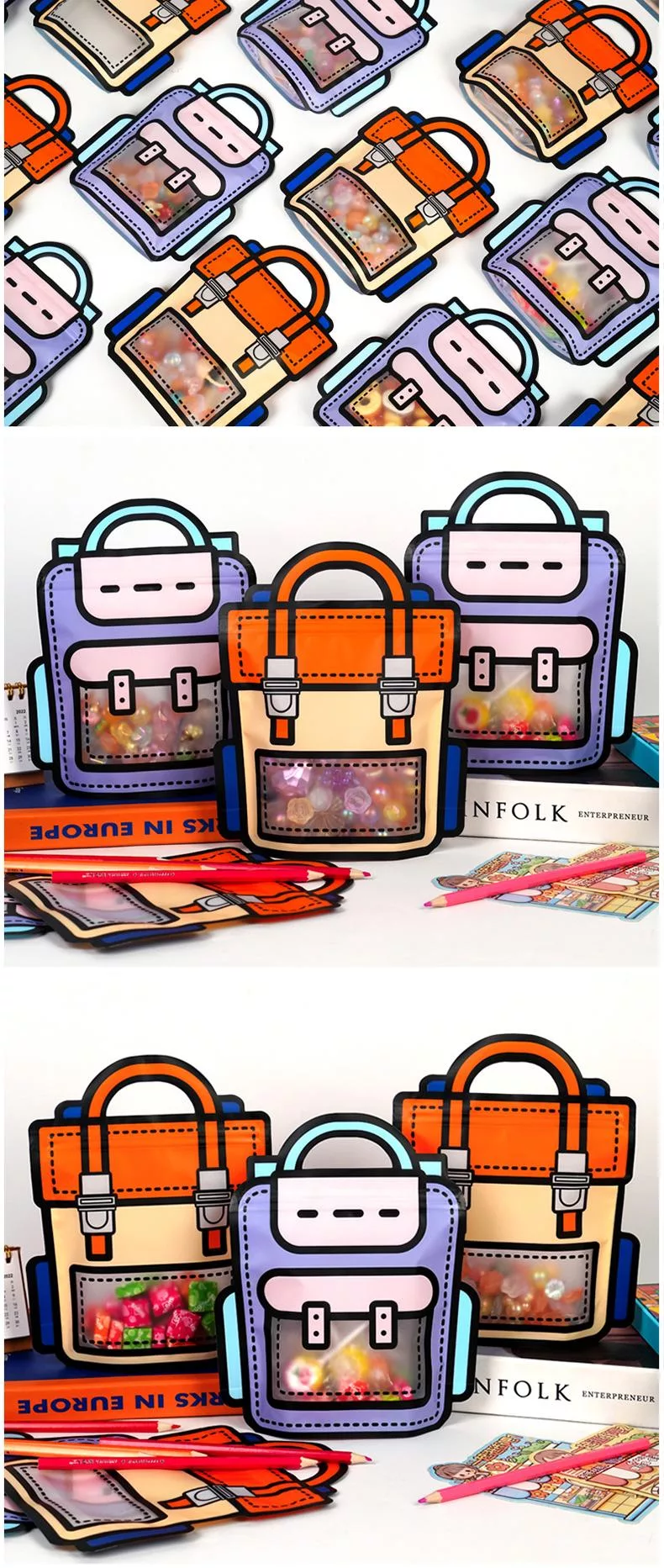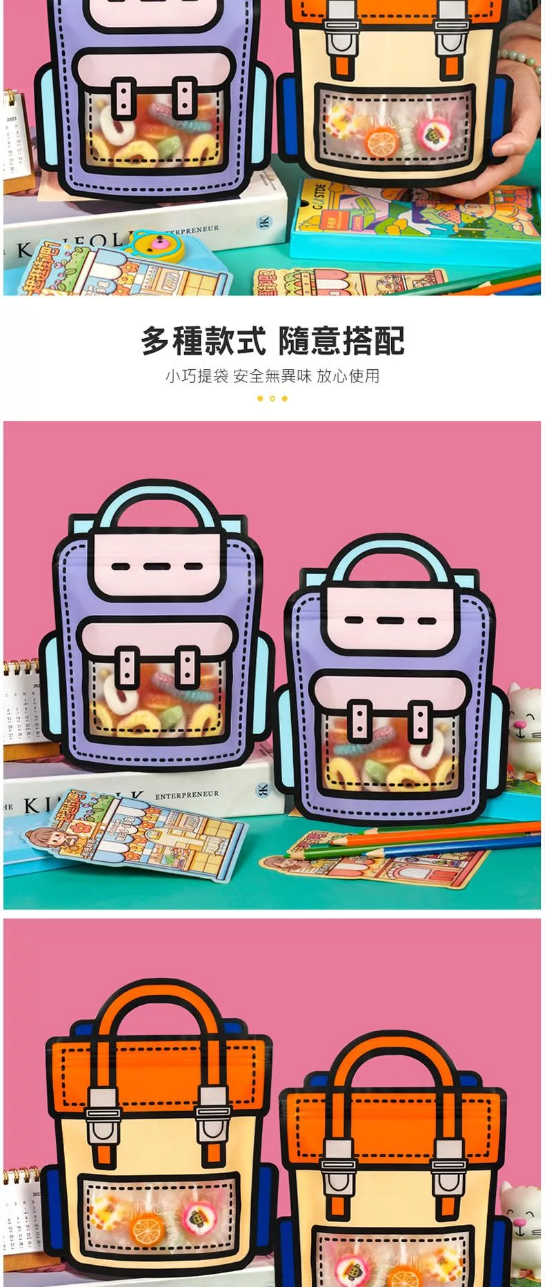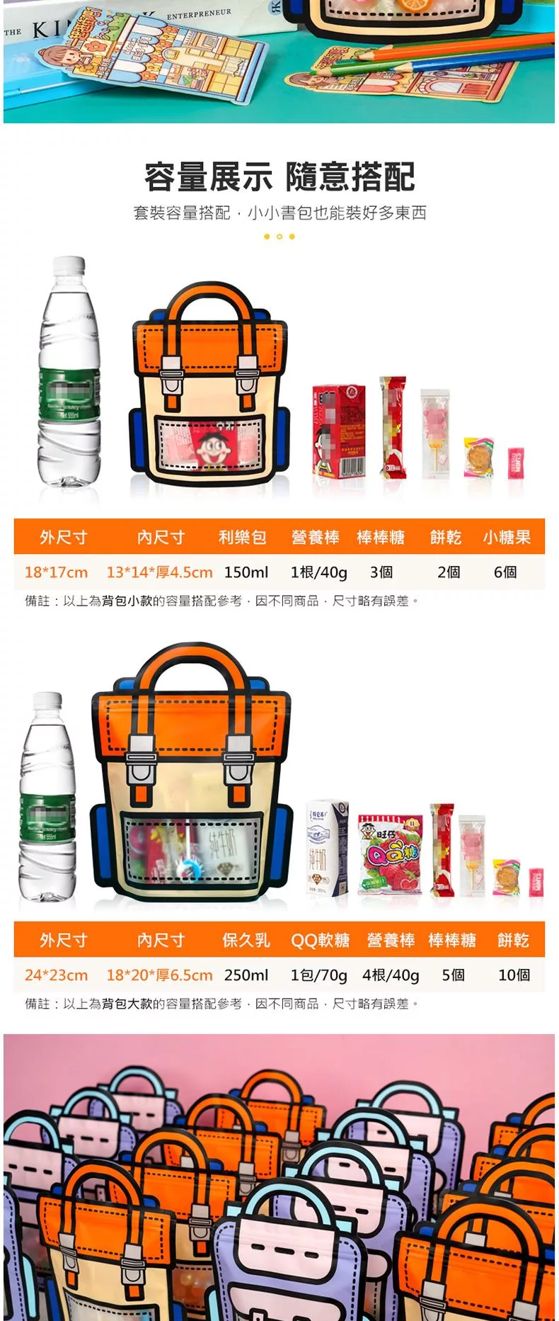 可愛背包手提零食袋 書包零食袋 背包/書包造型 手提自立袋 自立拉鍊袋 自封條 零食包裝袋 零食禮物袋