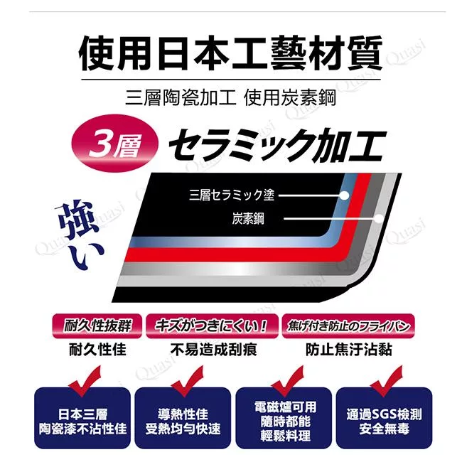 【日本北陸hokua】日本製極大金IH輕量級不沾平底鍋28cm(含蓋)不挑爐具/可用金屬鏟