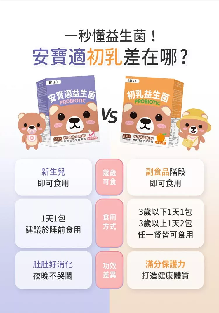 嚴選最適合嬰幼兒的3大益生菌,有助平衡消化道菌態、調整體質、維持消化道機能、幫助消化。
