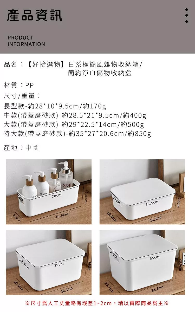 【好拾選物】日系極簡風雜物收納箱/簡約淨白儲物收納盒 -長型款