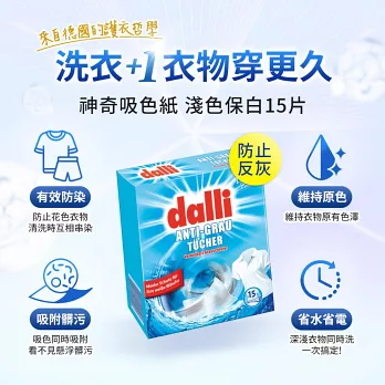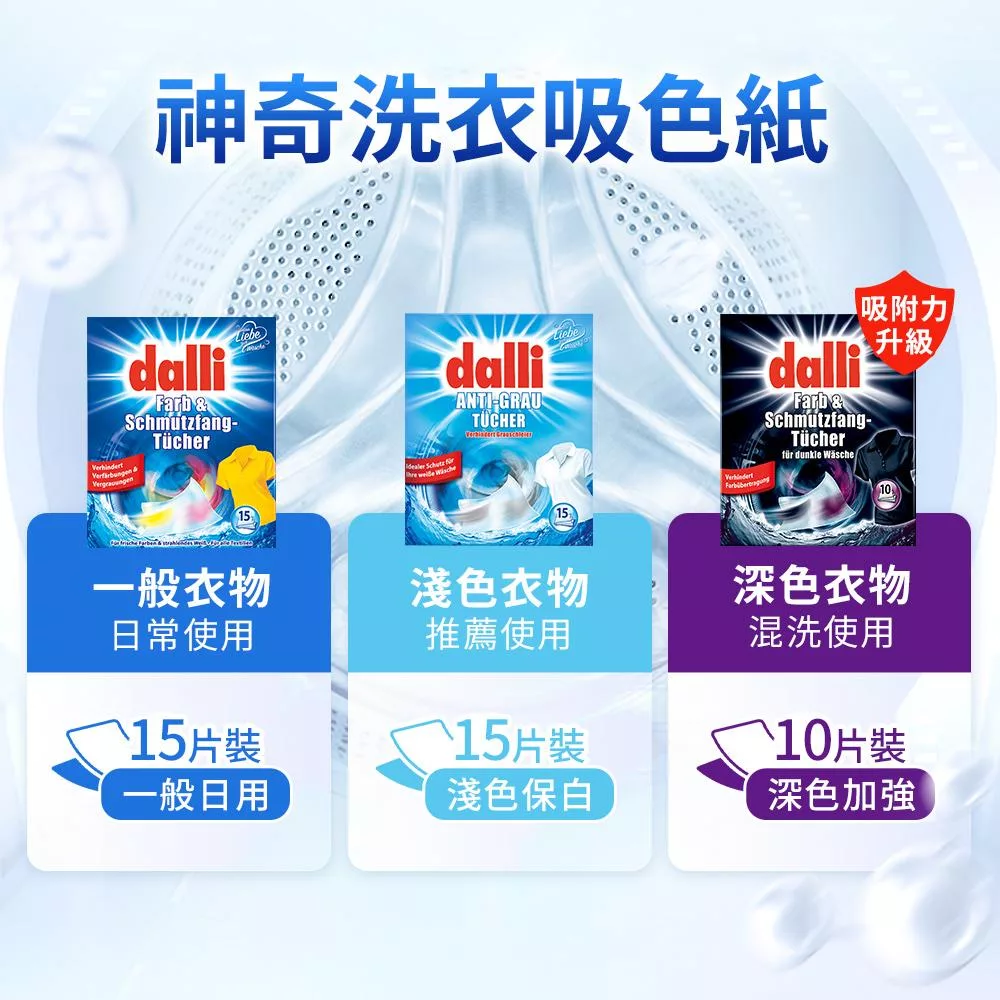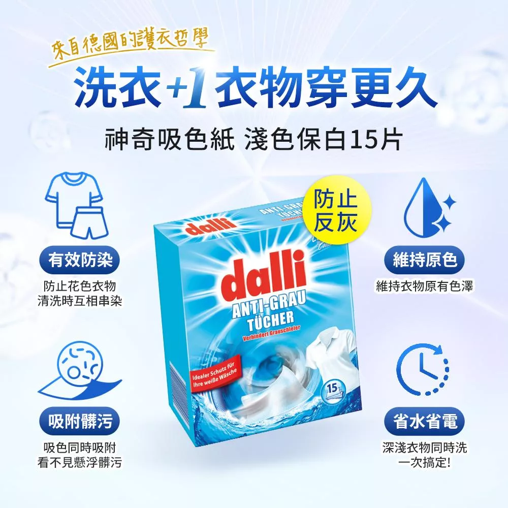 【Dalli德國達麗】神奇洗衣吸色紙-亮白15片(吸色片/吸色布/防染色)