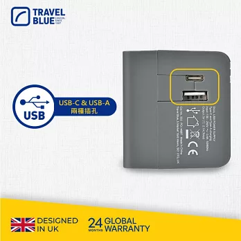 【Travel Blue 藍旅】萬國轉接插頭(USB與Type-C插孔)_TB255