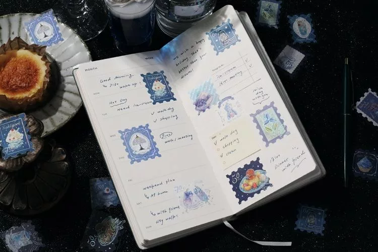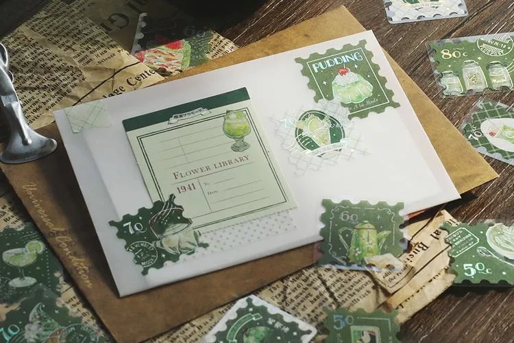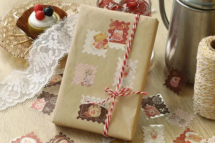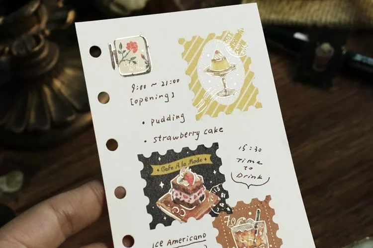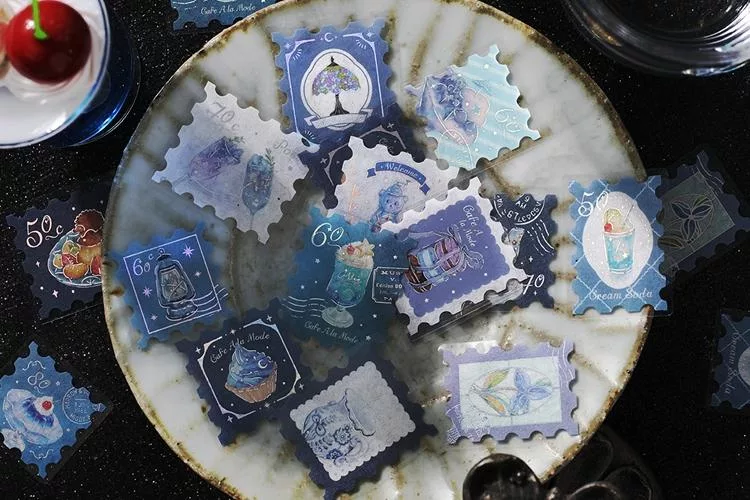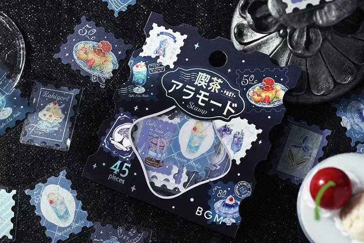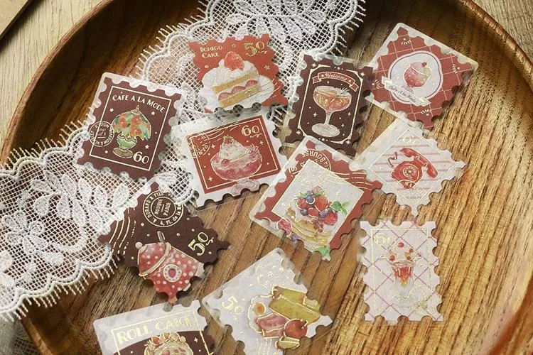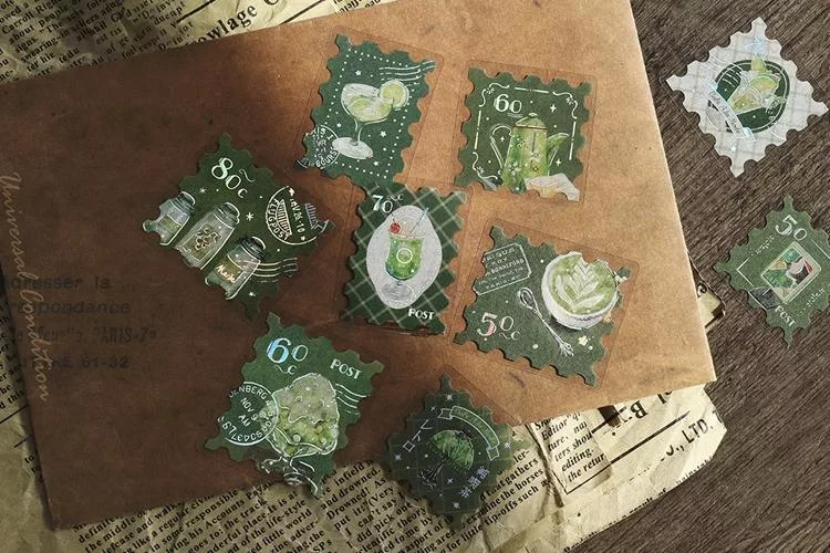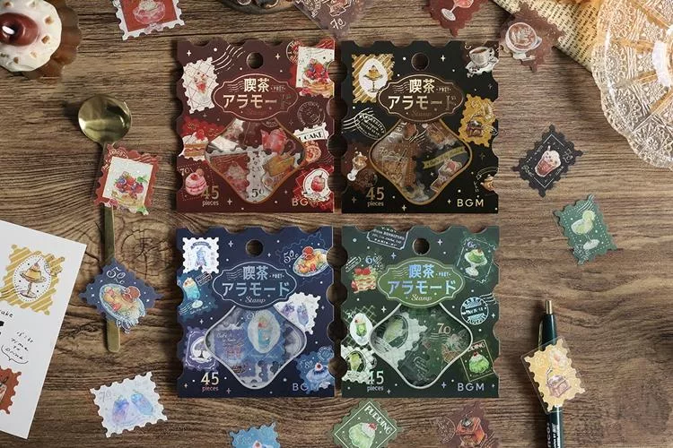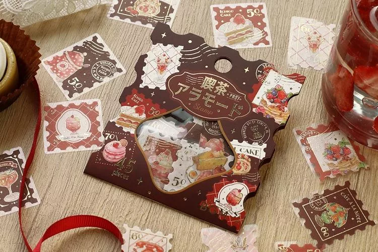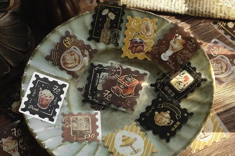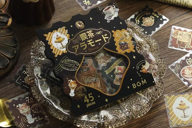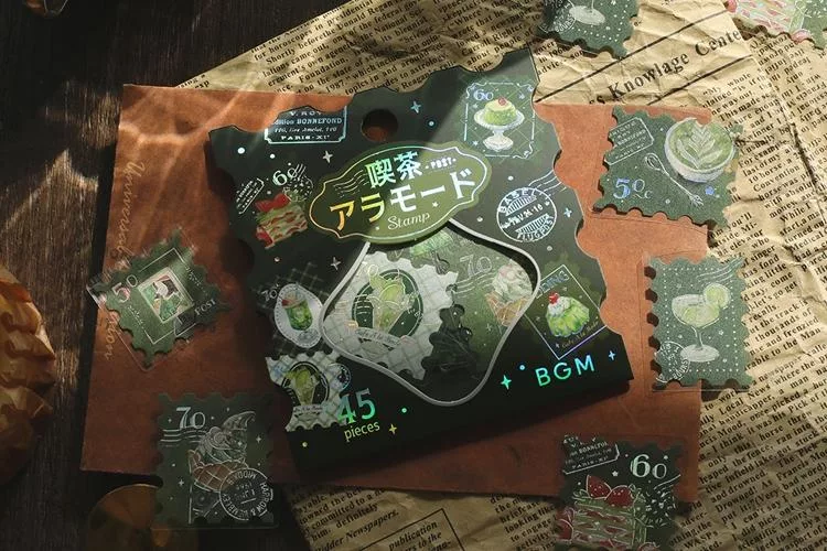 ▼【日本BGM】散裝金箔和紙貼紙包45入 ‧ 喫茶咖啡館郵票風-棕色
