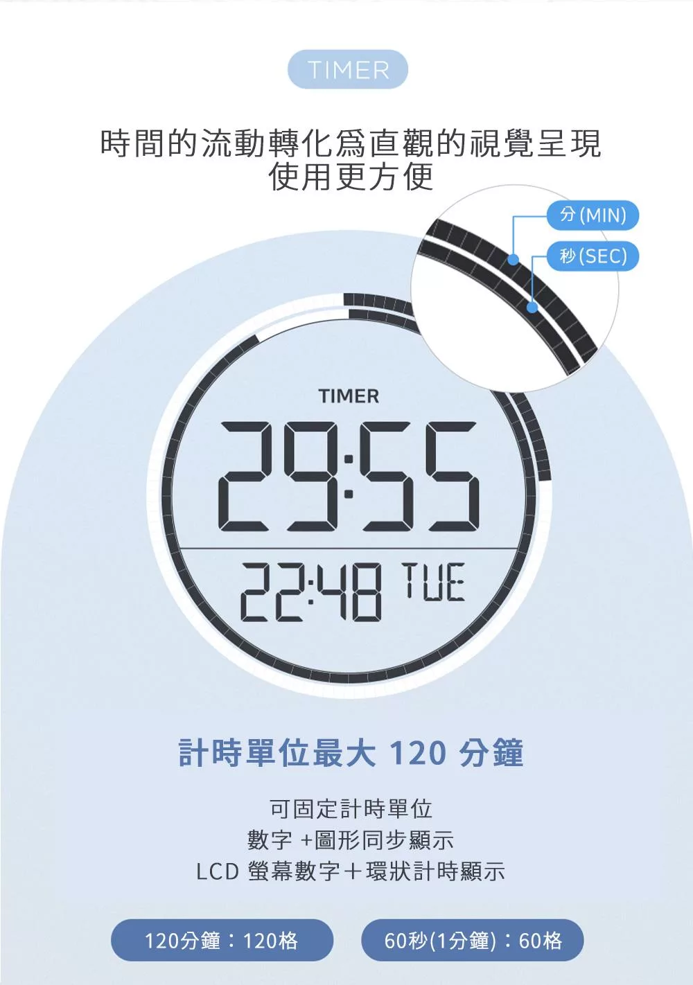 【韓國Nelna】可磁吸 靜音秒針 番茄計時鐘 ‧ Sky Blue