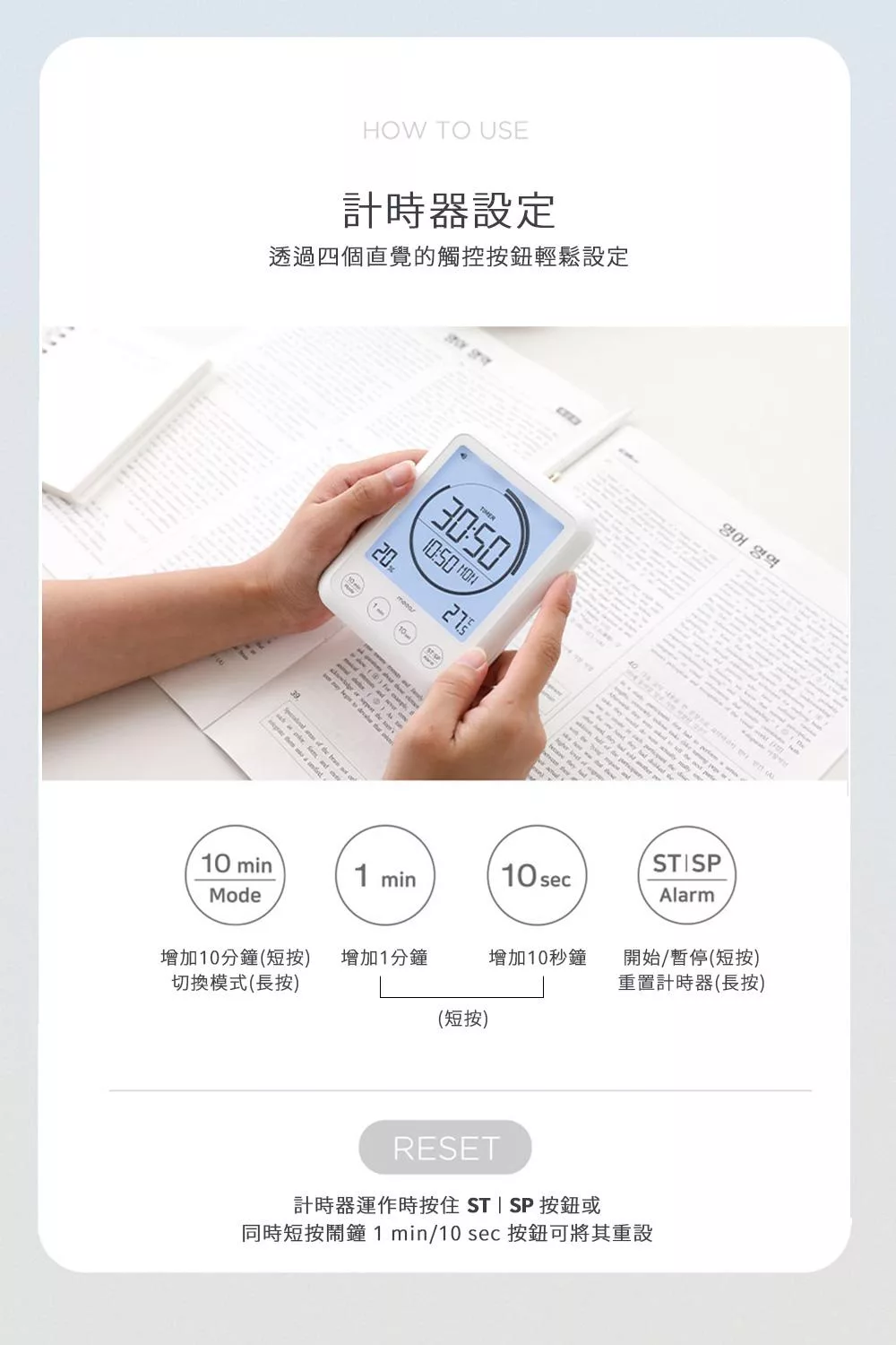 Mooas韓國六角轉轉專注學習定時器 白色 | 基本款/低年級