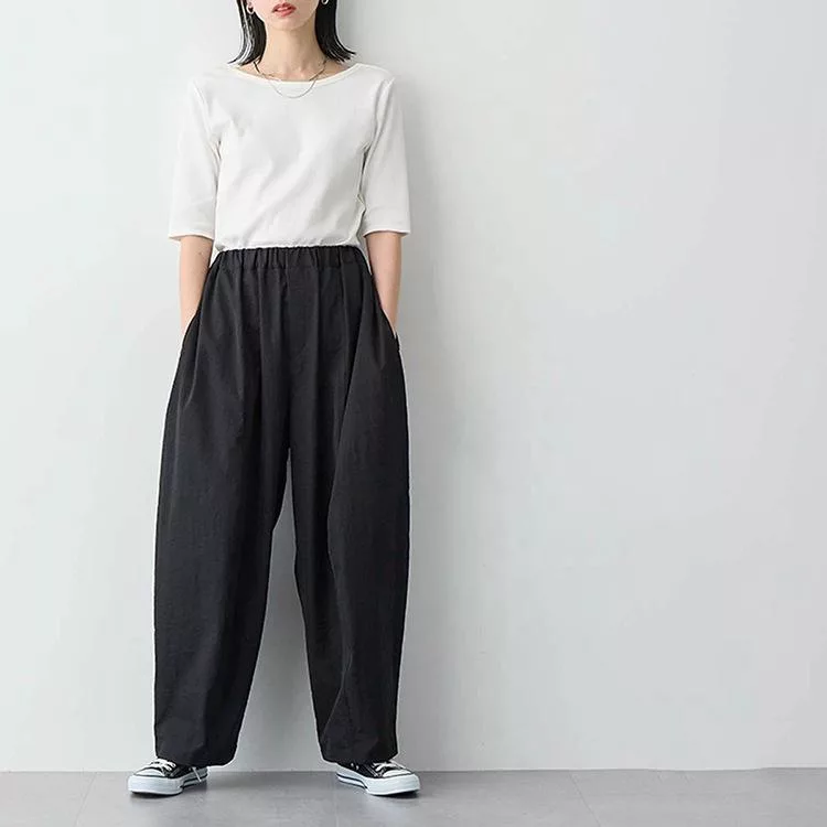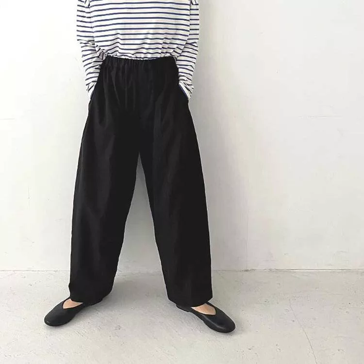 【慢。生活】日系純色百搭休閒寬鬆闊腿褲 J12214  FREE 黑色