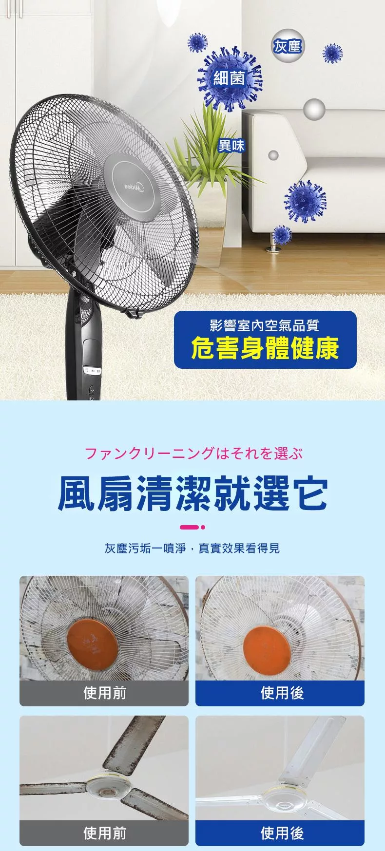 夏日必備,清潔效果看得見,讓電扇吹出健康風,提升空氣品質