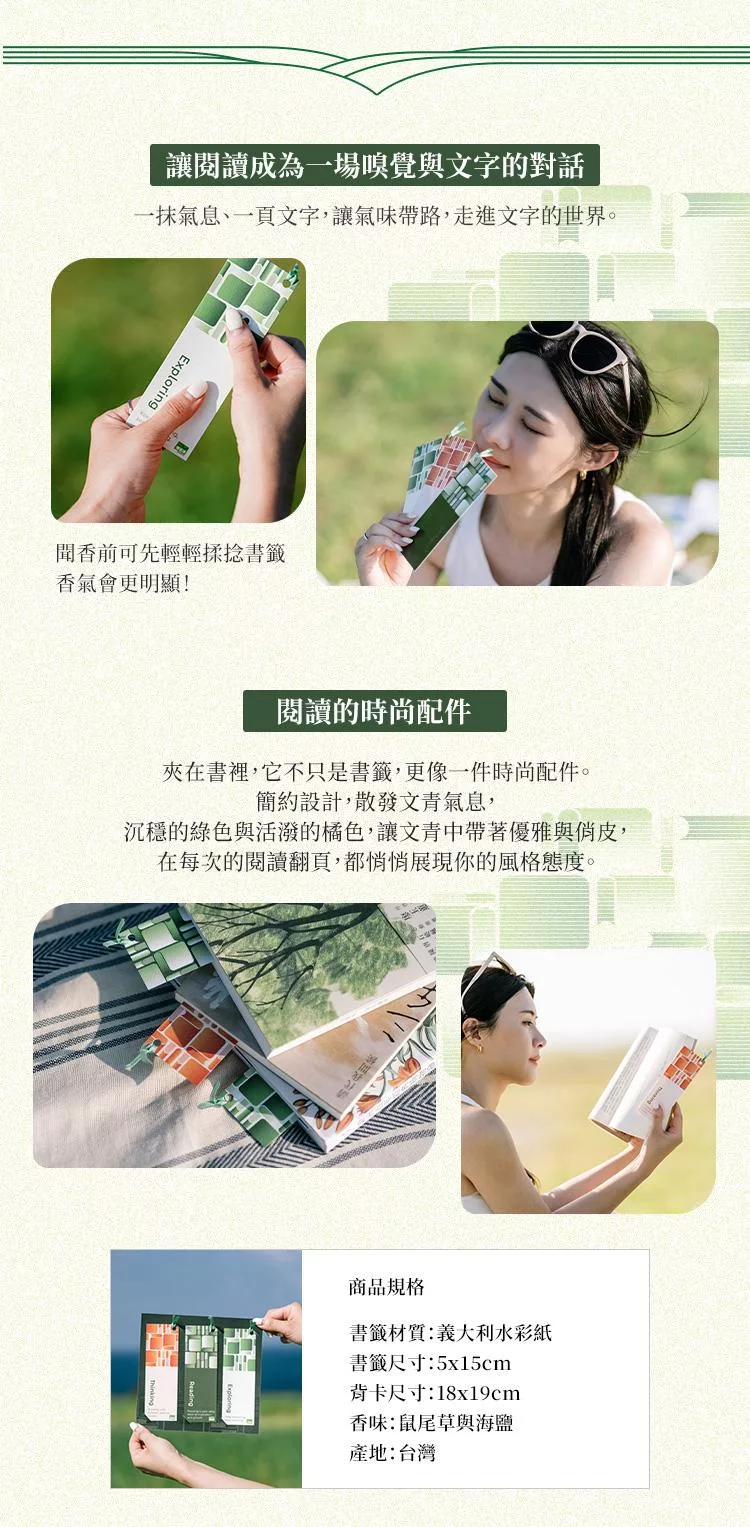 由於印刷工藝與淡雅香調的特性,初次使用時香氣可能不算明顯;建議可用指腹輕輕搓揉書籤表面,便能喚醒香氛微粒,讓味道更加清晰可感。